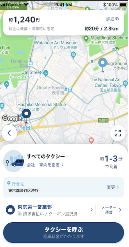- 利用料金 : 初期費用・月額利用料金無料、サービス利用料としてタクシー利用金額(運賃・迎車料金・その他オプション料金を含む)に対して5%