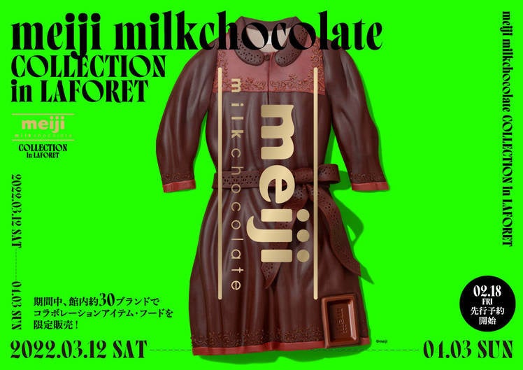 同イベントでは、コラボアイテム購入特典として、購入ブランドのロゴがデザインされたスペシャルパッケージの「明治ミルクチョコレート」を先着でプレゼントいたします。さらに、キャンペーン期間中、チョコレート色のアイテムをラフォーレ原宿館内の対象店舗で販売し、館内全体をチョコレートで演出します。