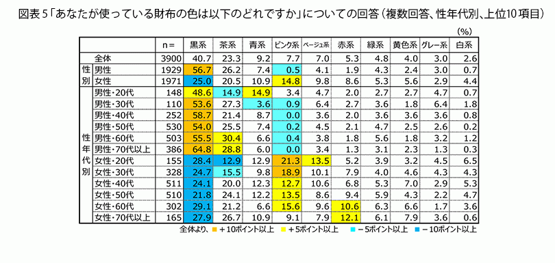 - 男性の半数は“黒系”を選ぶ、女性は多様な色を楽しむ