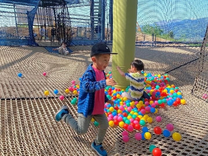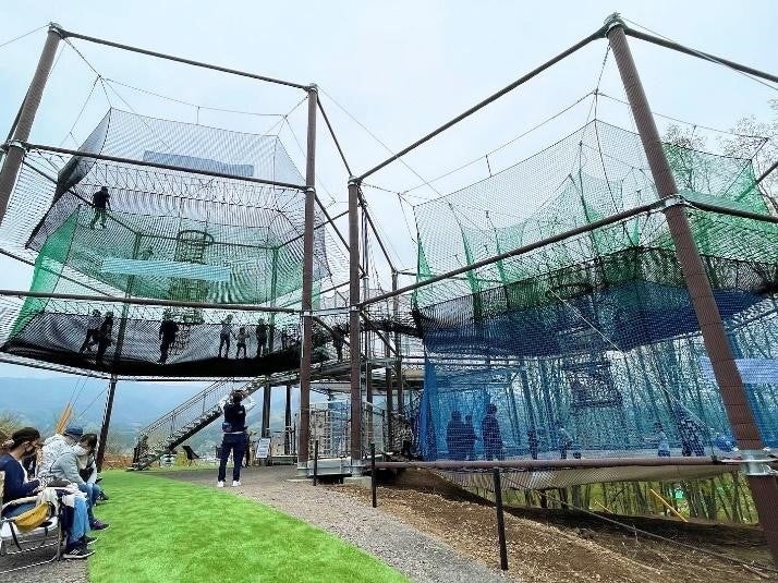おにぎり屋さん「かわばんち」の入る、道の駅川場田園プラザに隣接する、ネット遊具「HANETTA」
