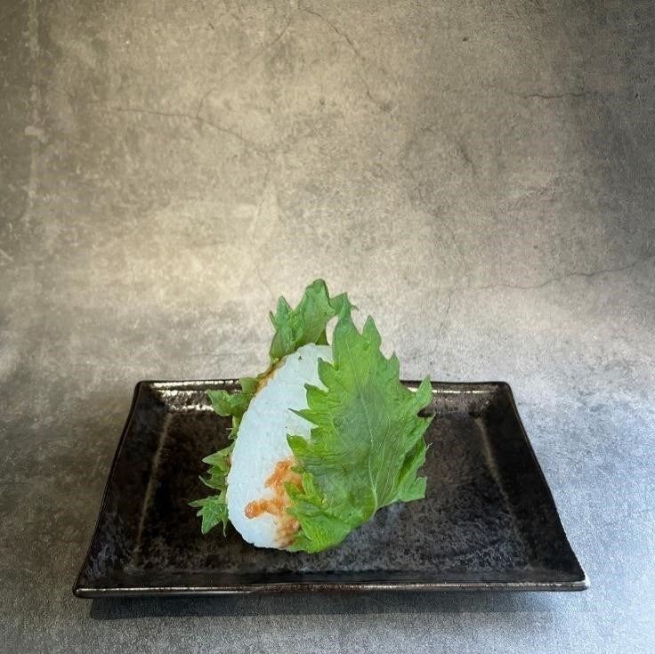 鮮やかな緑とさわやかな大葉の香りが、握りたてのかぐら味噌おにぎりの風味を一層引き立てます。