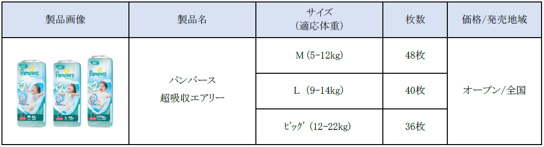 P&Gジャパン合同会社(本社:神戸市)は、赤ちゃんの健やかな成長を応援する乳幼児用紙おむつブランド「パンパース」より、「パンパース 超吸収エアリー」を2026年3月中旬より全国にて発売いたします。