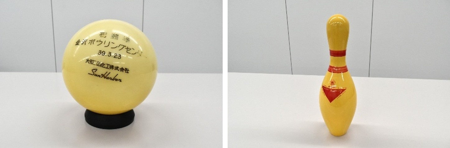 また、ご寄贈者様ご自身も、かつて当社金沢本社社屋が建つ場所にあった、当社のグループ会社が運営していた日本海側初のボウリング場で数年間勤務されていたご経験があり、同館のオープン記念ボールやピンなどもお譲りいただきました。貴重な品々をご寄贈いただき、深く感謝しております。