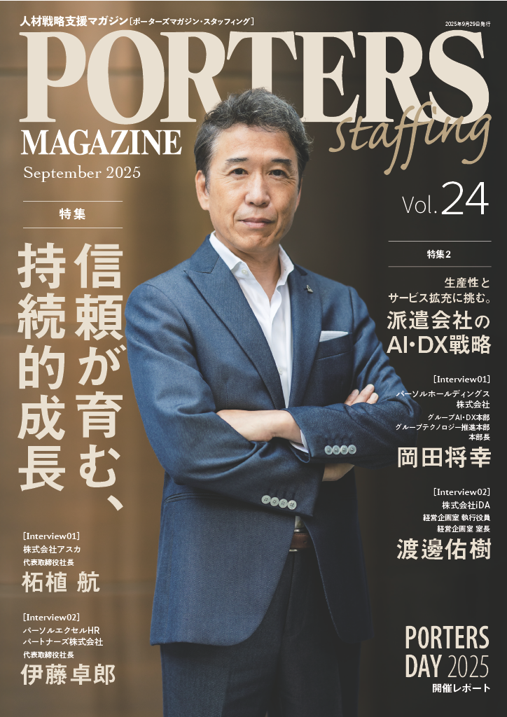 人材ビジネス向けクラウドシステムを提供するポーターズ株式会社(本社:東京都港区、代表取締役:西森康二)は人材戦略支援マガジン『PORTERS MAGAZINE Staffing Vol.24』を2025年9月29日に発行し、本日2025年10月16日よりWebサイトの公開をいたしました。
