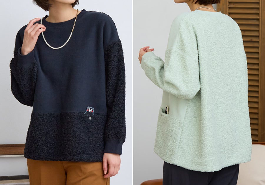 ふんわりとしたボアとなめらかなフリースの異素材切替で、見た目にも楽しいデザインに。