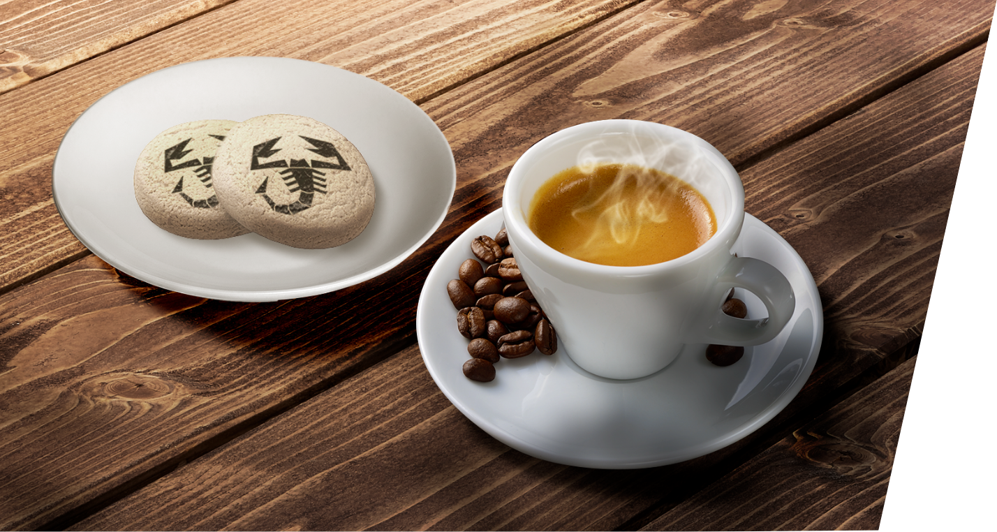 エスプレッソの聖地ナポリで“真のナポリコーヒー”と謳われるKIMBOの特製エスプレッソを、苦味と風味の豊かな“アバルトテイスト”で提供。さらに、アバルトのロゴをイメージしたオリジナルクッキーのご用意も。