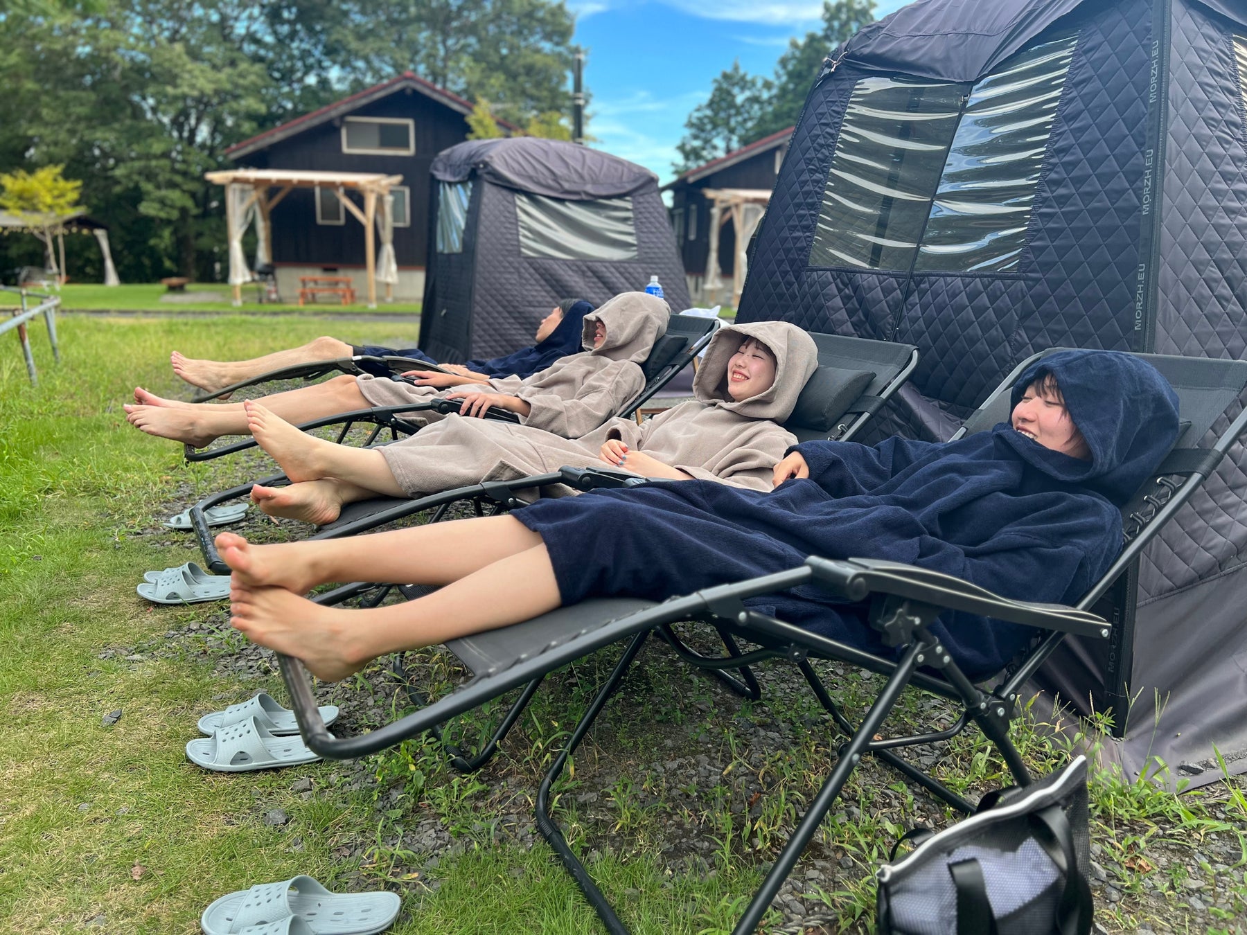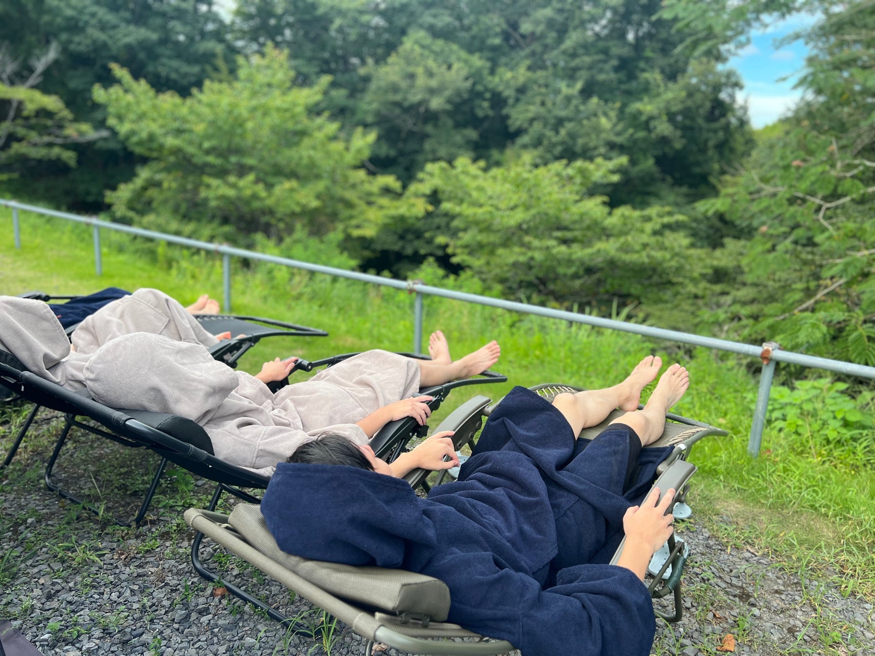 サウナで芯まで温まった後は、解放感のある大自然の中で外気浴。新鮮な空気と心地よい風をからだ全体で感じながら、都会ではなかなか体験できない、みどりの中でととのう極上のリラックス体験をお楽しみください。