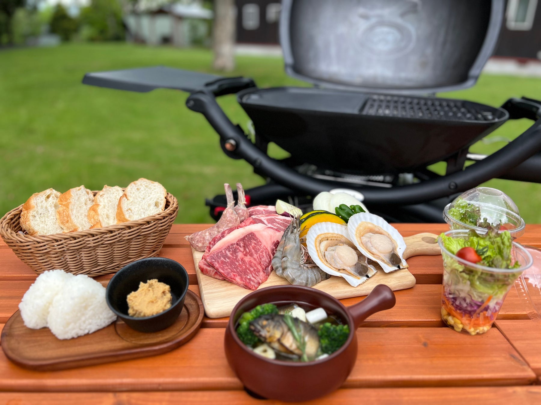 調理には、簡単・手軽にお楽しみいただけるガスグリルが利用可能。アウトドア初心者の女性やお子様でも、安心してお食事をお楽しみいただけます。