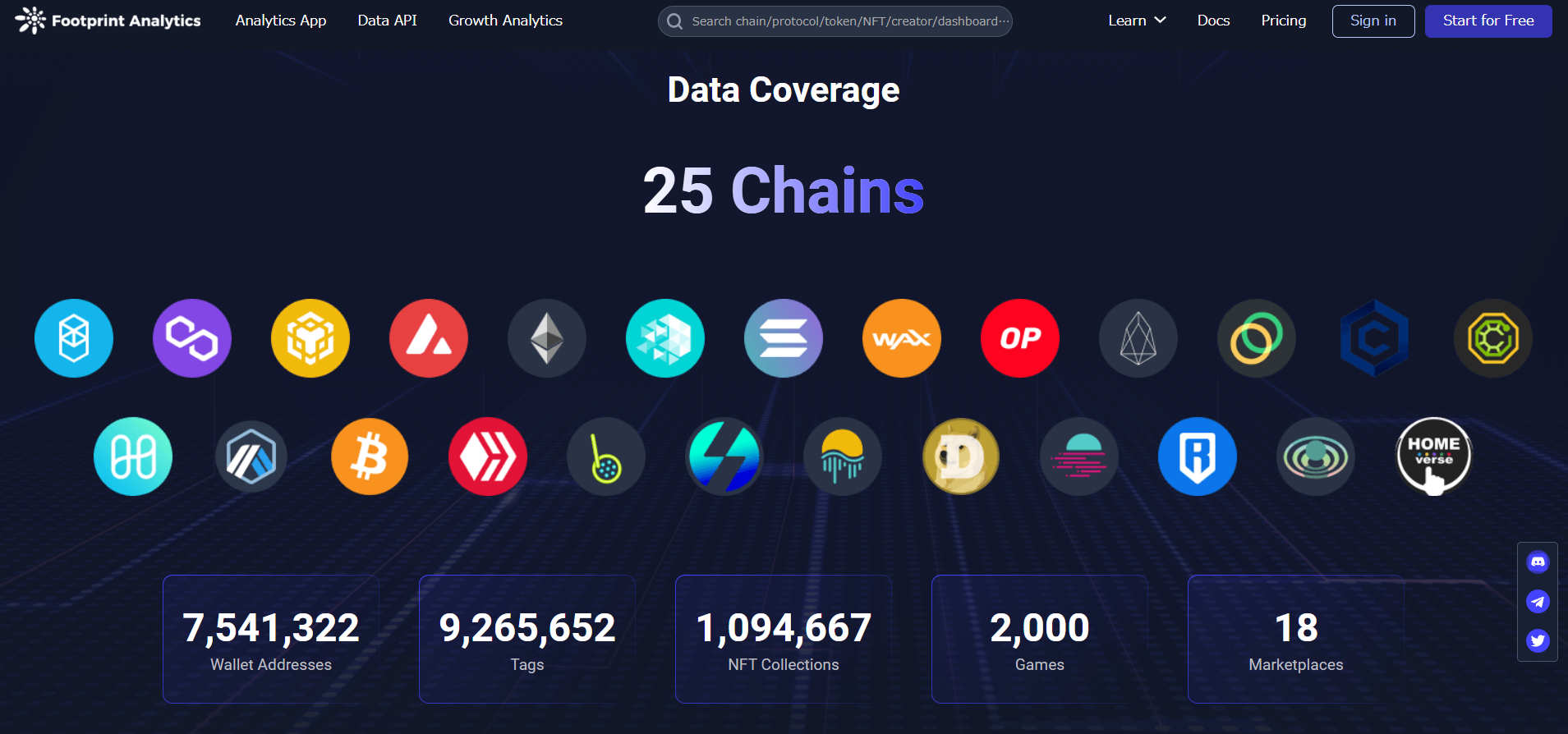 「Footprint Analytics 」は、Web3業界で代表的なデータアナリティクスサービスであり、ブロックチェーンデータ分析をコーディング経験なしに誰もが利用可能にする、分散型金融(DeFi)およびNFT(non-fungible token)アナリティクスソフトウェアを開発しています。
