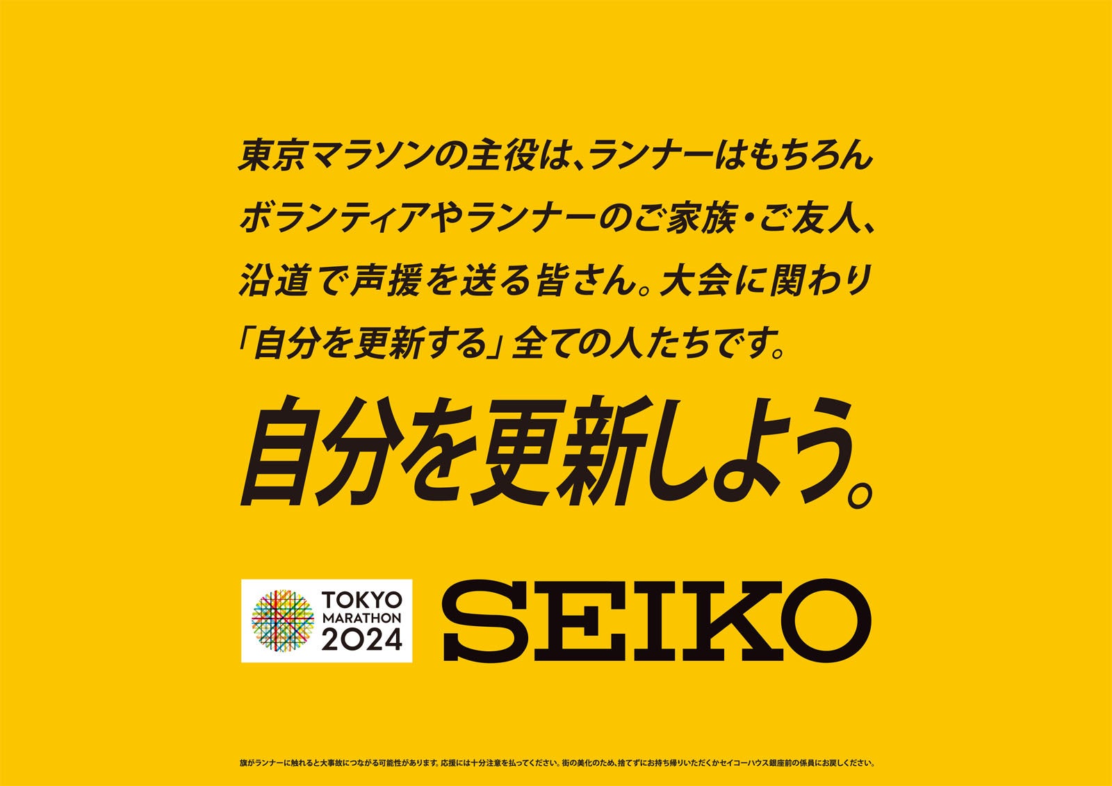 セイコーは「自分を更新しよう」というスローガンのもと、目標タイムの達成を目指すランナー、大会を支える人、選手を応援する人、大会に関わる全ての人が新しい自分に出会えるようオフィシャルタイマーとして大会に貢献します。