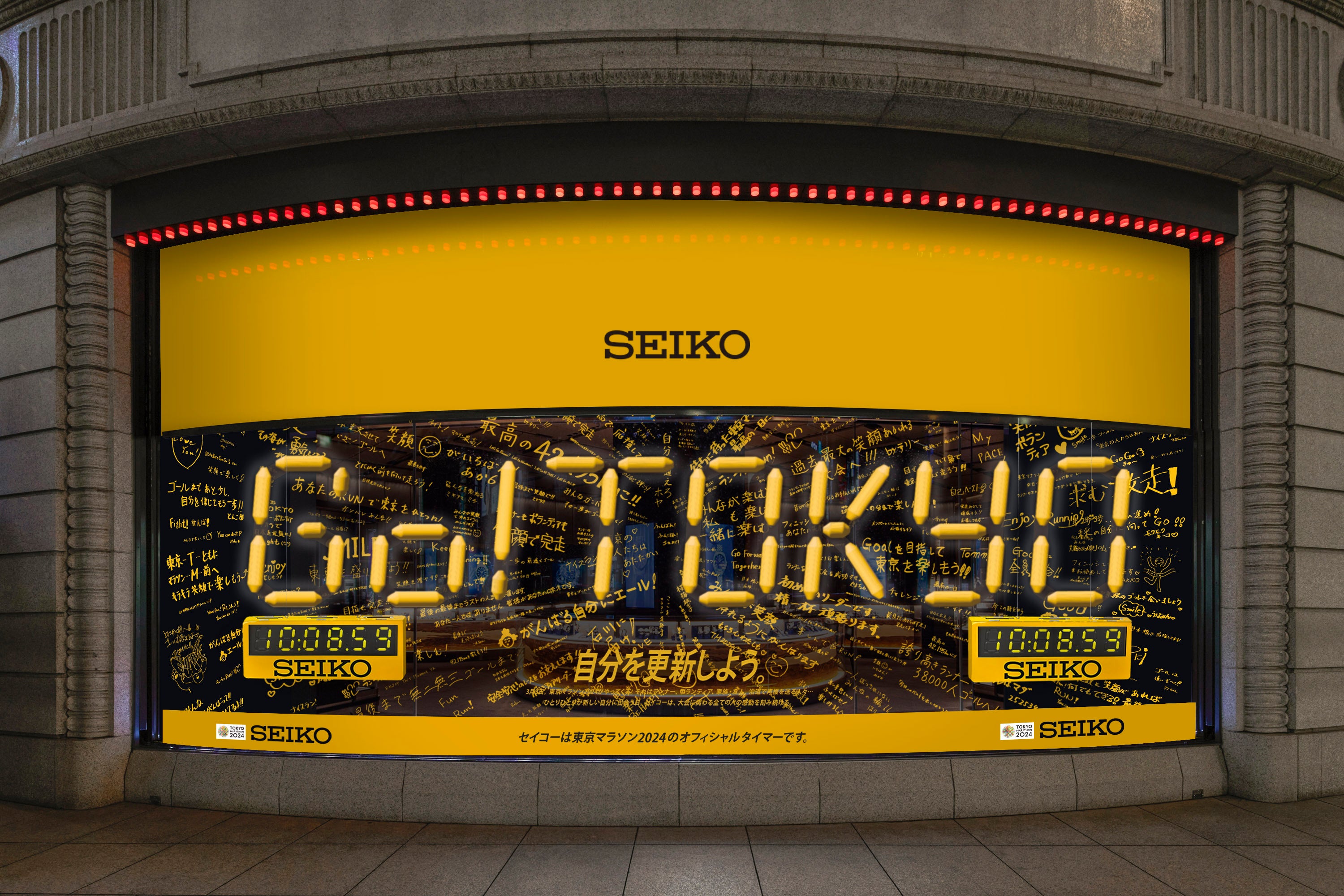 2月22日(木)~3月3日(日)まで、SEIKO HOUSE GINZAのショーウインドウが東京マラソンをテーマとしたディスプレイに。今大会、セイコーはボランティアなど大会に関わる皆さまから手書きのランナー応援メッセージを募集しました。ウインドウには、皆さまから寄せられた「想い」と「Go!TOKYO」の文字が掲載され、東京を駆けるランナーを応援します。