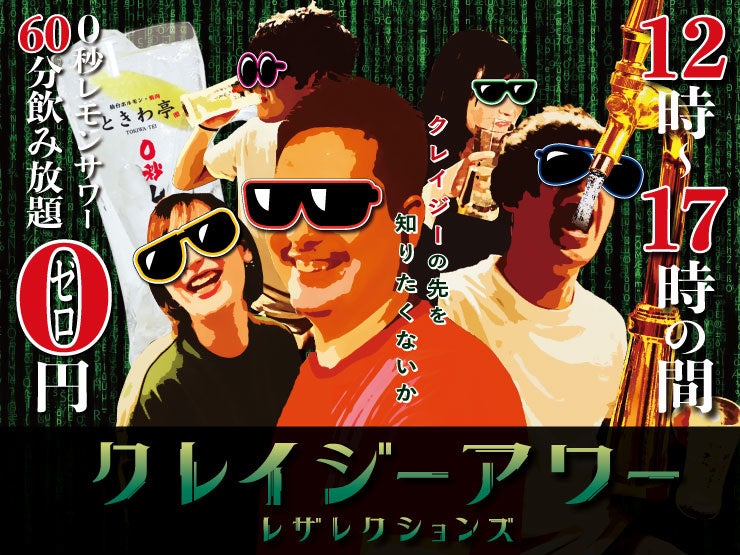 当店では、まん延防止等重点措置、および時短要請を受け、渋谷店など一部店舗で営業時間を前倒しし、12時~17時の間 通常 60分 500円(税込)で飲み放題となる「0秒レモンサワー」を60分0円で提供する『ときわ亭のクレイジーアワー〜レザレクションズ〜』キャンペーンを開始しました。