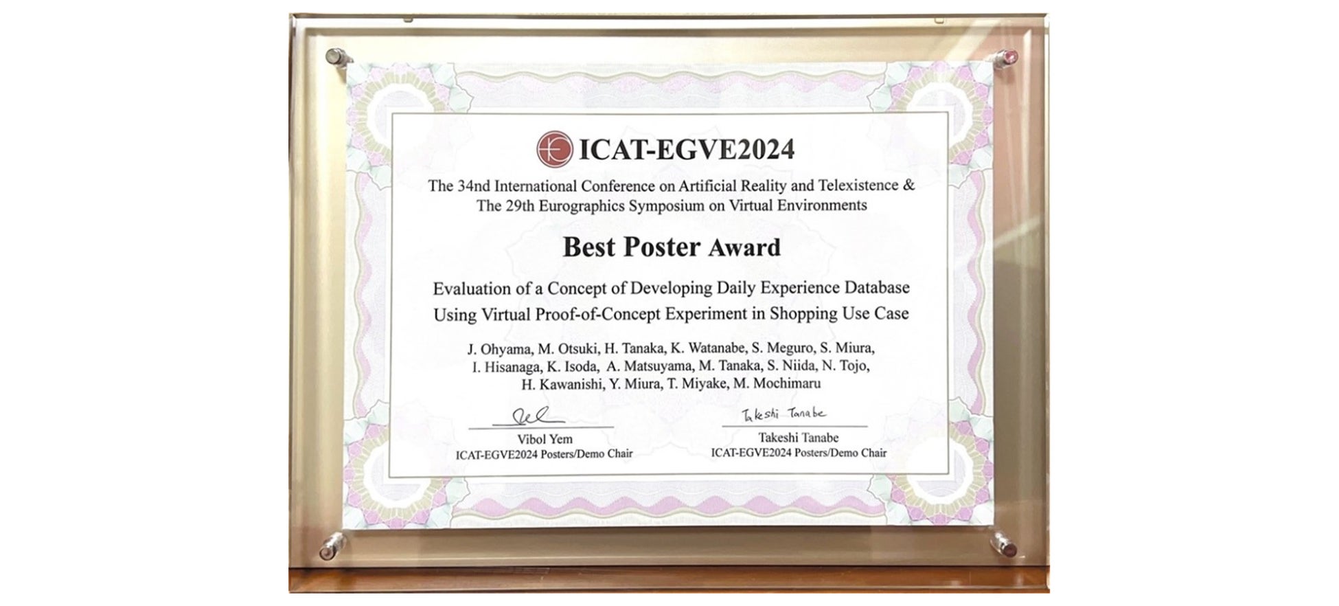 株式会社博報堂DYホールディングス(東京都港区、代表取締役社長:水島正幸、以下博報堂DYホールディングス)は、国際会議「ICAT-EGVE 2024(International Conference on Artificial Reality and Telexistence & Eurographics Symposium on Virtual Environments 2024)」において、Best Poster Awardを受賞いたしました。