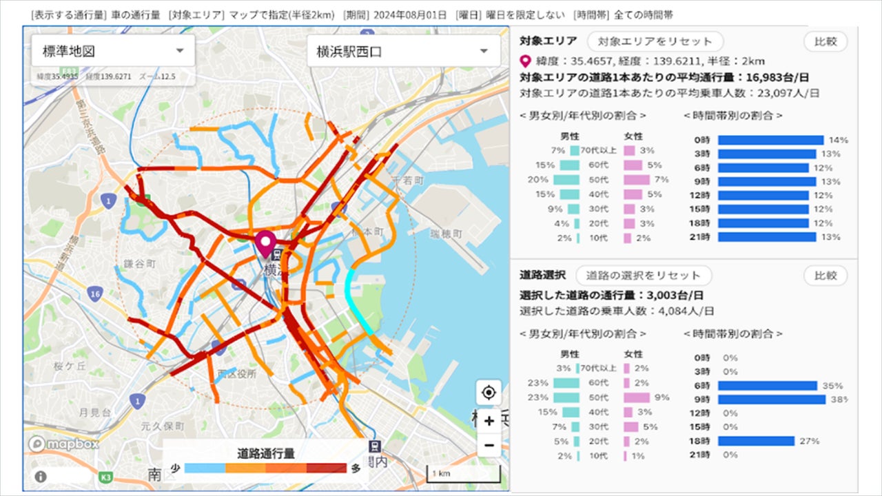 これにより、店舗開発や交通計画、地域の交通状況分析など、幅広いビジネス用途や地域課題に対応します。本ウィジェットは、LAPおよびLAP Liteのユーザーにオプションメニューとして提供され、「月額50,000円(税別)、年間契約60万円(税別)」でご利用いただけます。