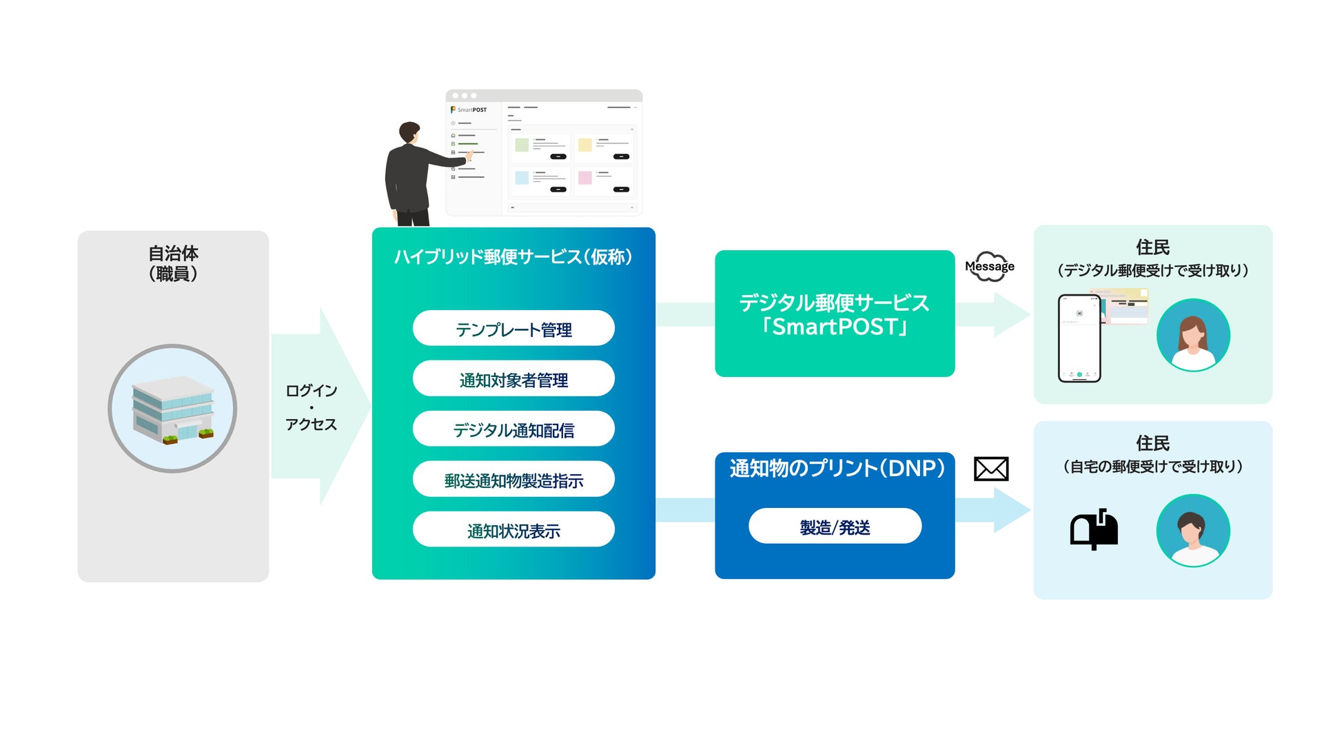 今回の業務資本提携により、現在xIDが自治体向けに提供しているデジタル郵便サービス「SmartPOST」を軸に、DNPの強みを掛け合わせることで、紙とデジタル双方の利点を活かした、通知業務のDXを支援するサービスを共同開発します。