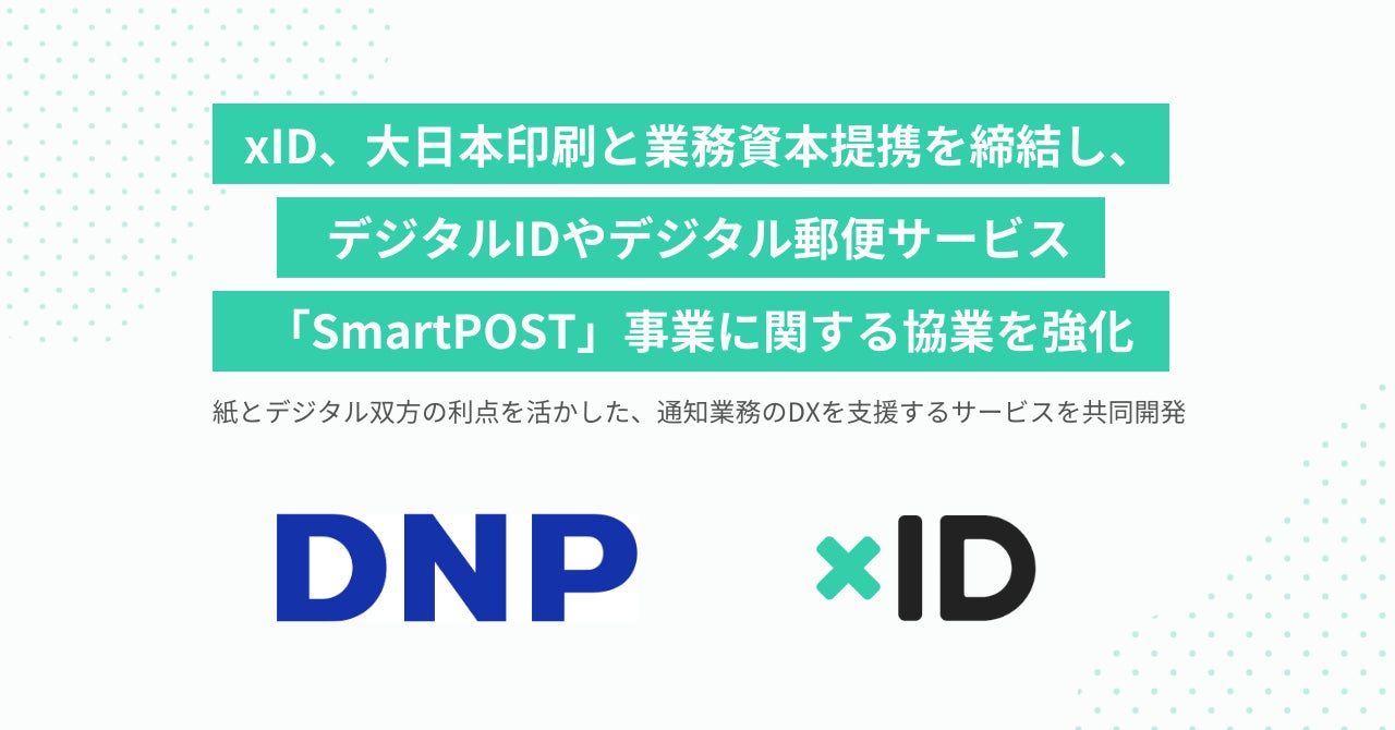 xID、大日本印刷と業務資本提携を締結し、デジタルIDやデジタル郵便サービス「SmartPOST」事業に関する協業を強化