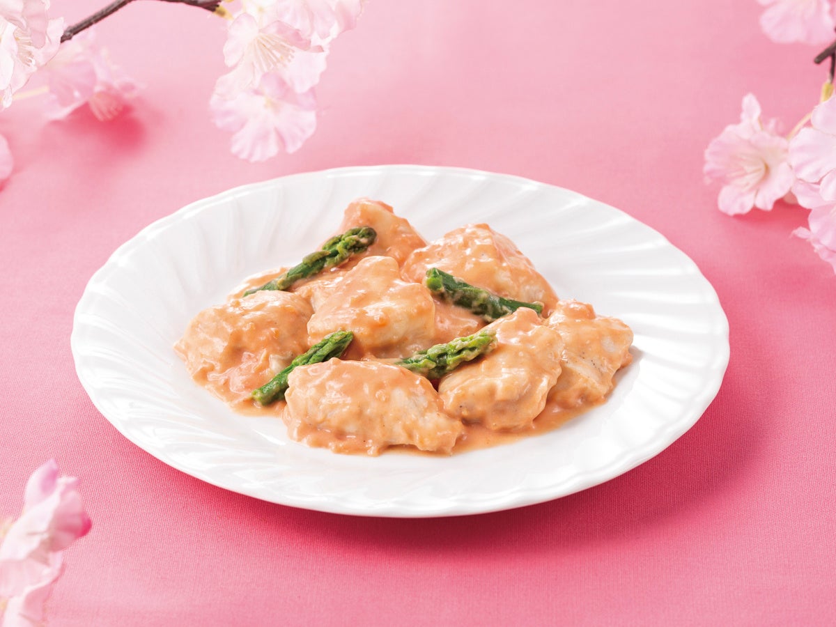 チキンにトマトソースと濃厚なクリームソースを混ぜ合わせたクリーミーな味わい。話題のロゼソースで見た目も華やか。