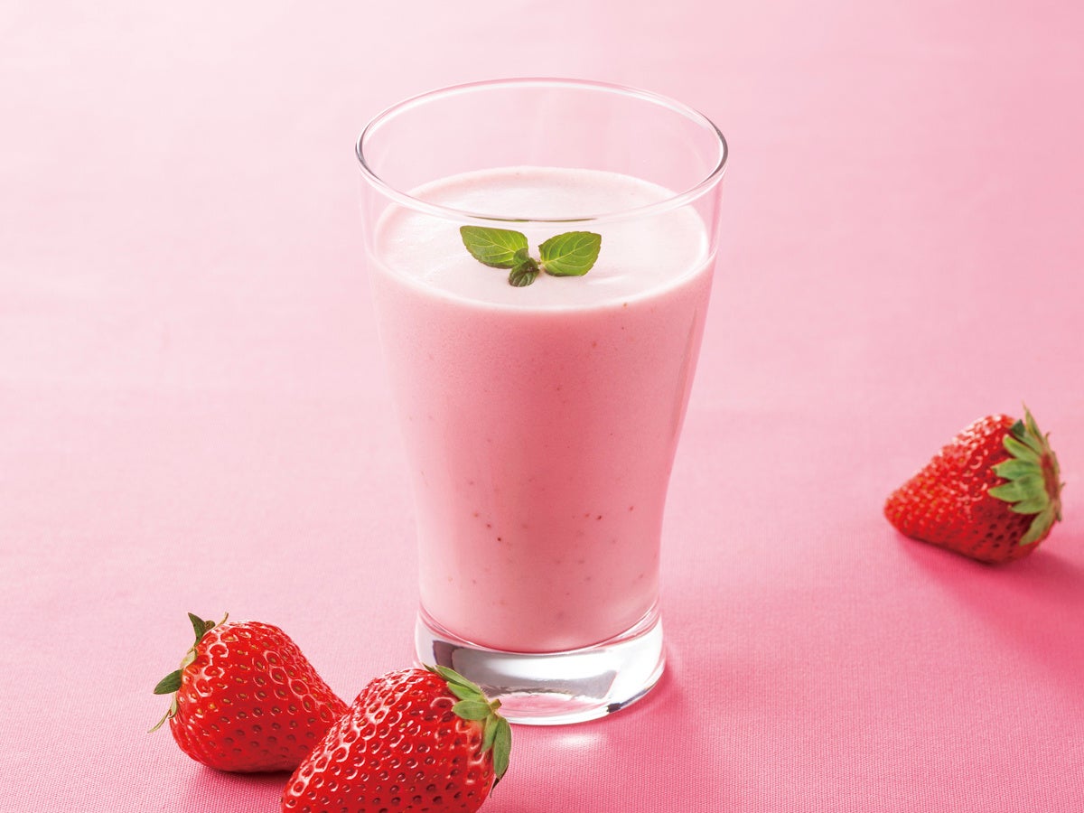旬のいちごを使ったミルクスムージー。まろやかな牛乳にいちごのほのかな酸味が味わえます。