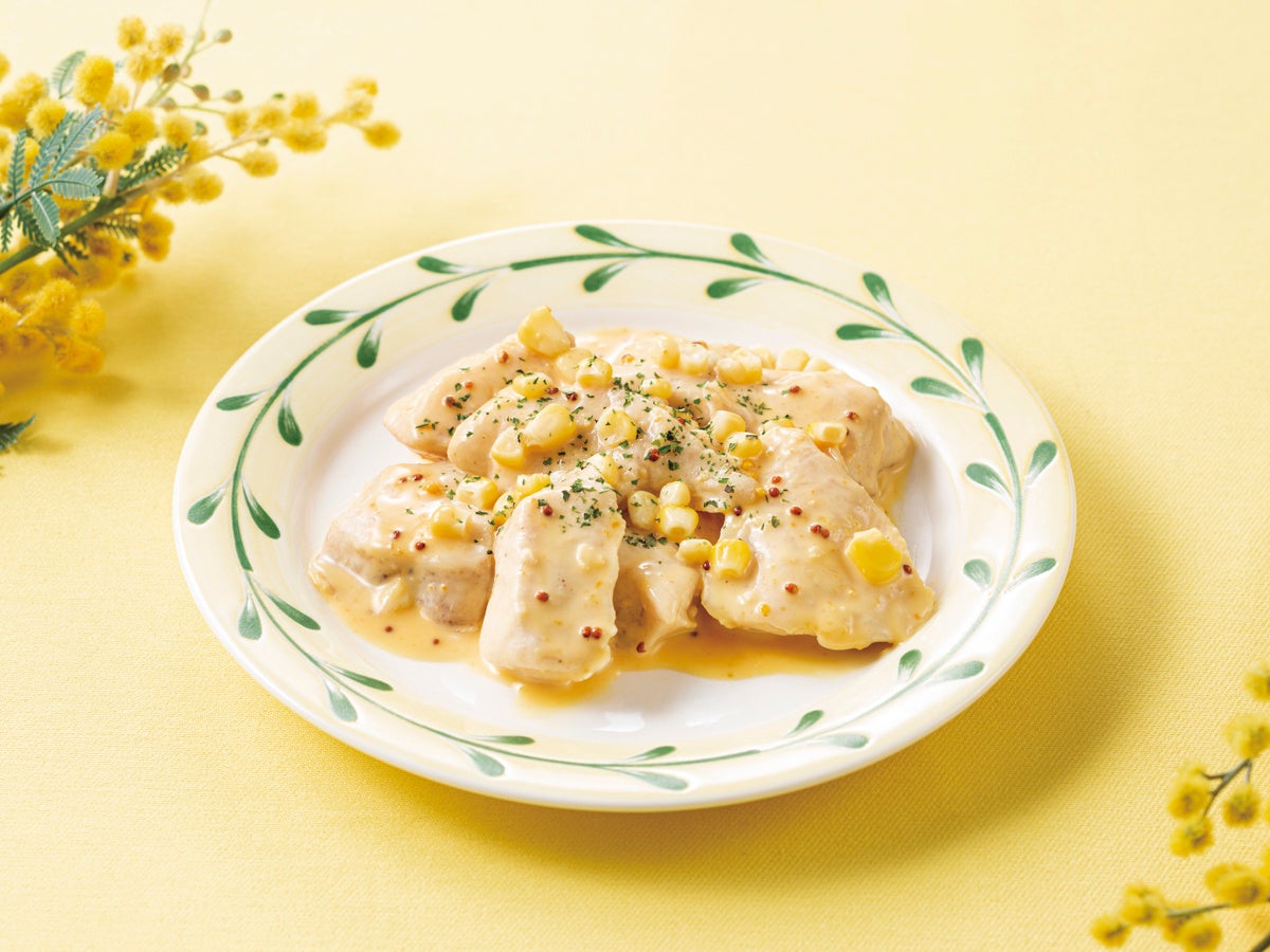 春のうららかな陽気を感じさせるハニーマスタード味のチキン。はちみつの優しい甘さとマスタードの刺激が食欲をそそるメニュー。