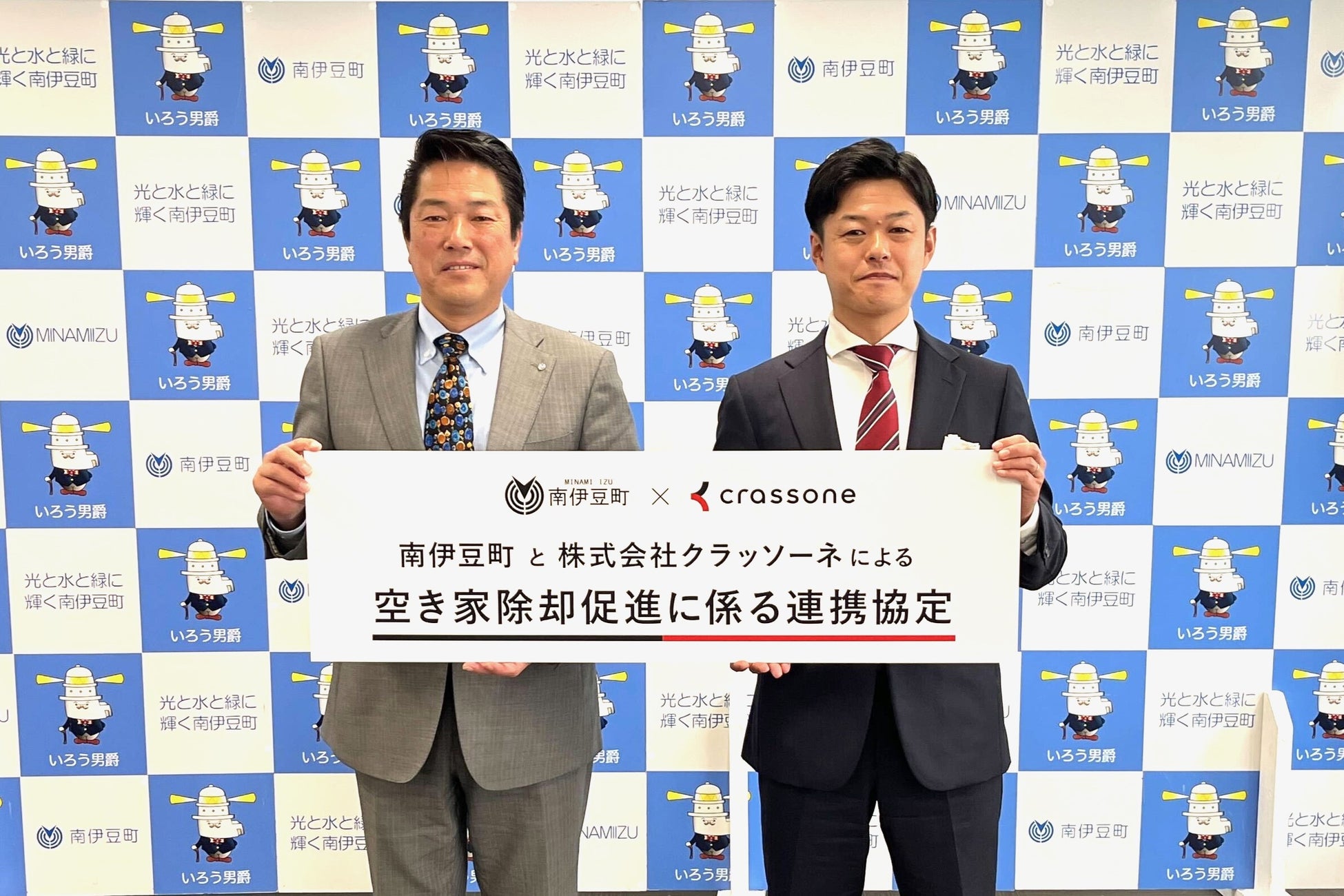 解体工事のマッチングプラットフォーム「クラッソーネ」を運営する株式会社クラッソーネ(愛知県名古屋市、代表取締役:川口 哲平、以下「当社」)は、静岡県南伊豆町(以下、「南伊豆町」)と「空き家除却促進に係る連携協定」を締結いたしました。昨今、全国的にも社会課題となっている空き家問題への対策として、南伊豆町の空き家除却を推進することで、安全安心なまちづくりを目指します。