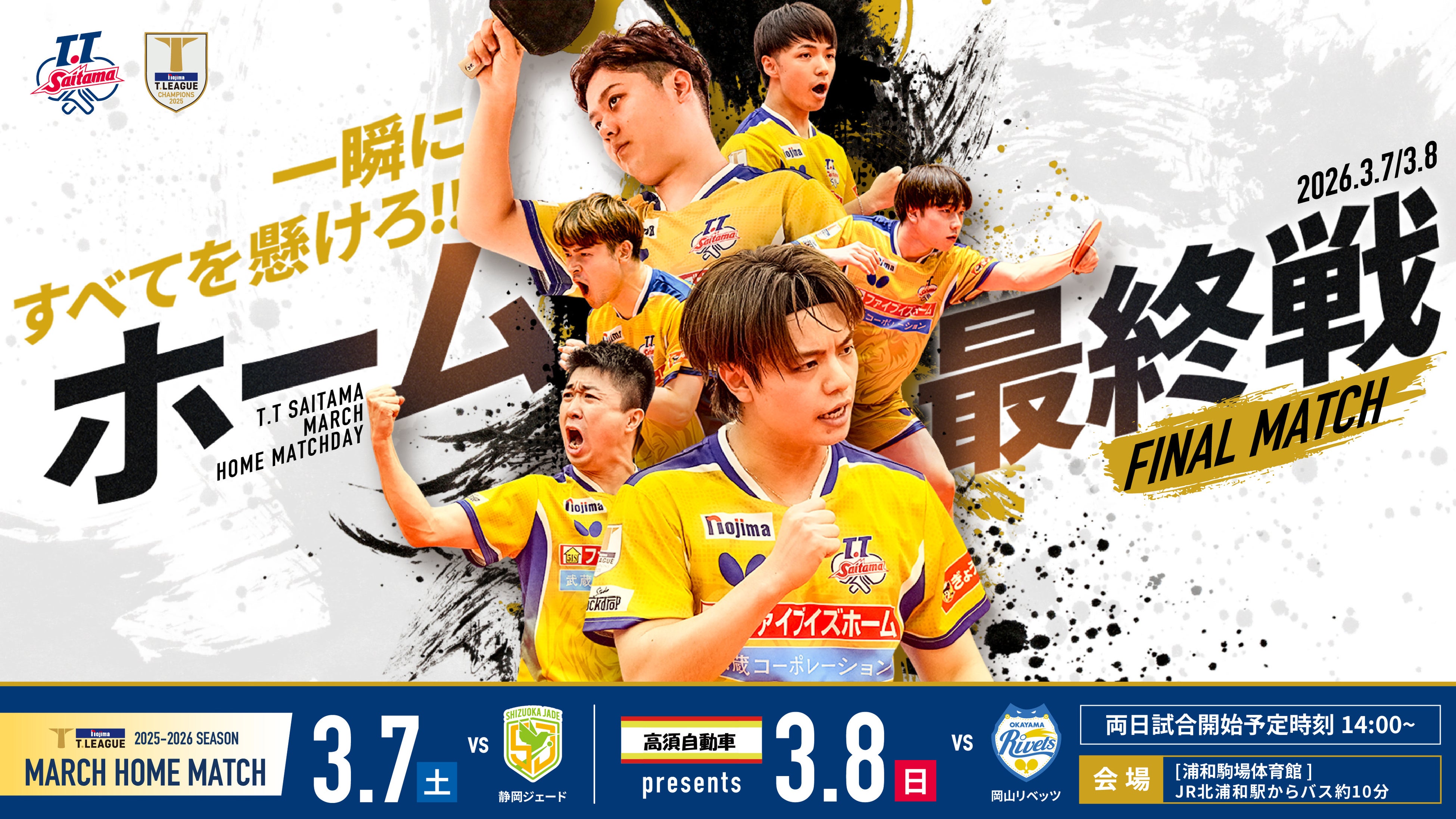 【T.T彩たま】試合結果/ノジマTリーグ 2025-2026シーズン第24戦 vs静岡ジェード