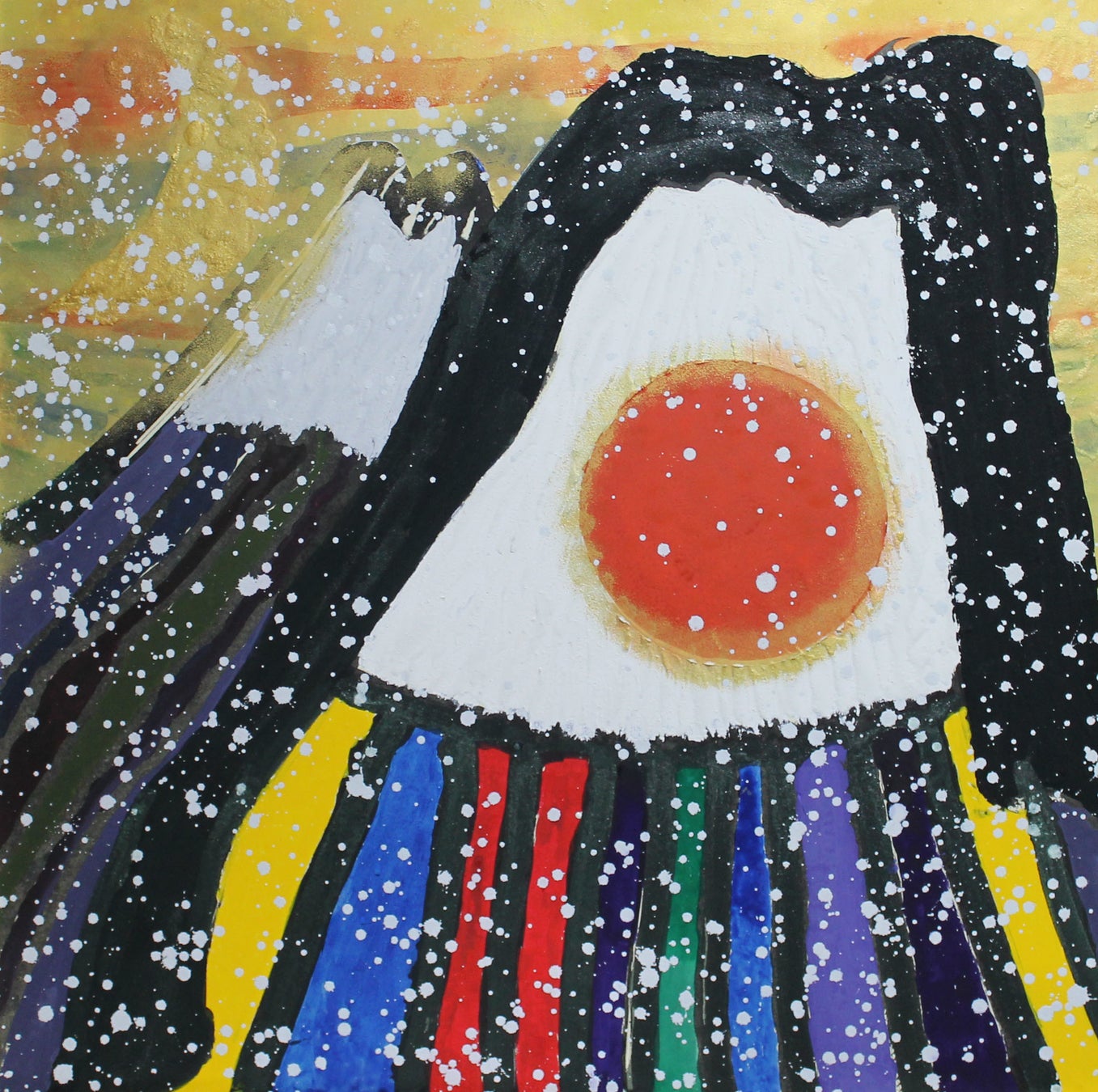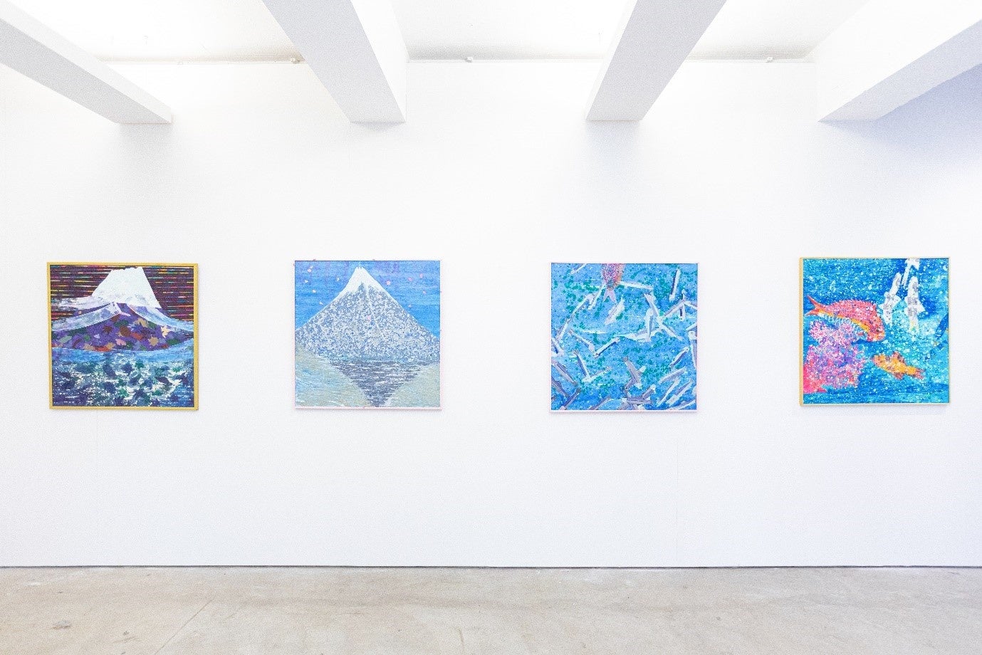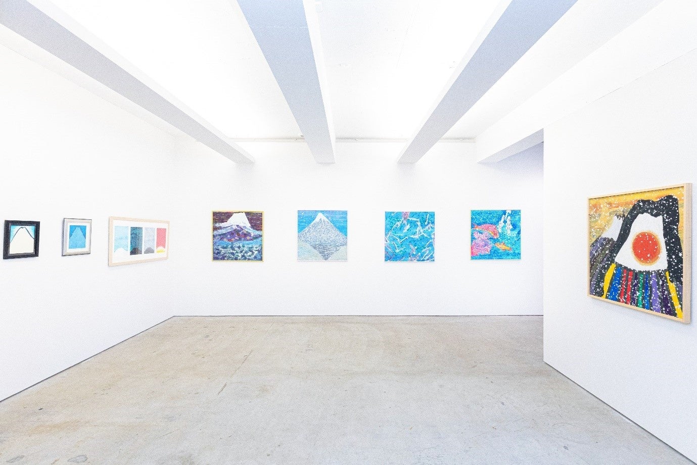 幼い頃から富士山に親しみ続けてきた伊藤は、富士山を青い三角と白いギザギザというステレオタイプな姿で描くことはありません。むしろ世界を見通すためのテレスコープとして富士山を扱い、季節や気候ごとに変化する姿を捉えています。一つの作品に様々な技法を駆使することも特徴の一つで、構図が明快であるが故に画材の美しさが目立つ、富士山のようにシンプルな美しさを提示しています。