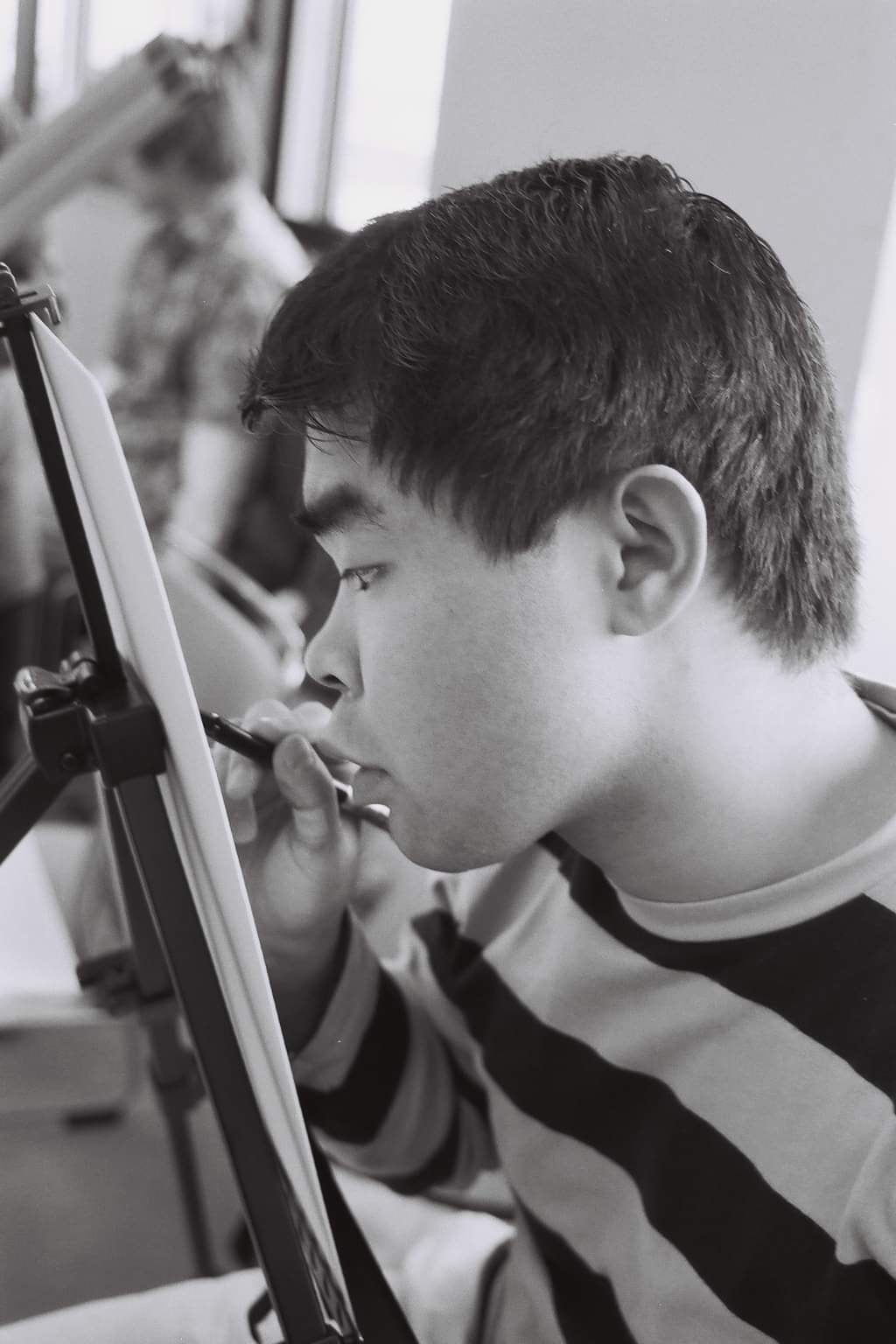 1984年9月25日生まれ・川越市在住。他人との対話はにこやかに、穏やかに、「ハイ」と頷きながら会話できますが後から悩み始めます。水泳が特技。遠泳にも挑戦。乗り物に詳しく、一人で通勤も出来ます。自転車も大好きです。現在(株)際コーポレーションにて画家として就労中。