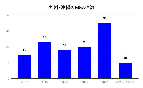 また、2023年1月から5月までに成約したM&A10件は、すべて売却側あるいは譲受側の事業エリアが九州であるM&Aとなっており、そのうち5件は福岡県の事業者によるものでした。