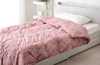 冬寝具の代表格である羽毛布団に使われるダウン素材は、布団内の温度・湿度を快適に保つ優れた機能性があり、更に他の掛布団に比べ圧倒的に軽く睡眠の邪魔にならないという利点があります。ダウンケットはそうした利点を活かして、夏を始めとするオールシーズンの使用を想定した製品となります。また、洗濯ネットに入れていただくと洗濯機で丸洗いしていただくことができるのもダウンケットの特長の1つです。本製品は、CILゴールドラベルを取得したホワイトダックダウンを93%使用しています。通常ダウンケットの多くは20マスキルトで作られていますが こちらは30マスキルトを採用しているので、羽毛が偏りにくく、より体にフィットしてくれるので程よく保温し、寝冷えしにくい作りになっているのが特徴です。2枚セットも販売しており、カラーはピンク(花柄)、ブルー(花柄)、ベージュ(無地)、グレー(無地)の4色で展開しております。