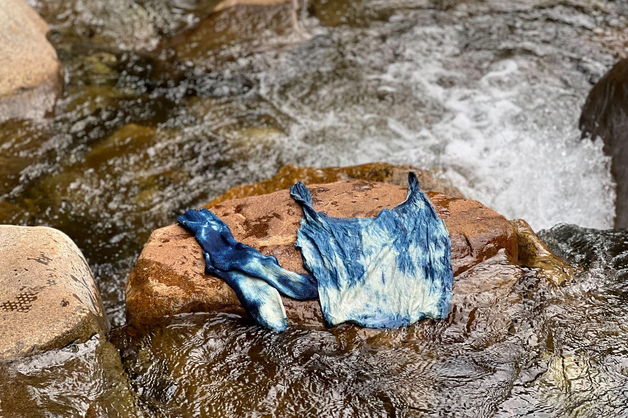藍染は染料そのものが自然由来であることや染め上がった布が丈夫になること、染め直しができることからサステナブルであるとされています。本プランでは、事前に用意したコットンバッグやソックスのほか、お客様が持ち込んだ布製品も染めていただくことが可能です。また、天然藍染に四万十川の源流水を使用することで、足摺宇和海国立公園 滑床渓谷の大自然、愛媛県松野町に広がる日本の原風景とも言える懐かしい田園風景に触れ、地域の魅力を感じていただきます。