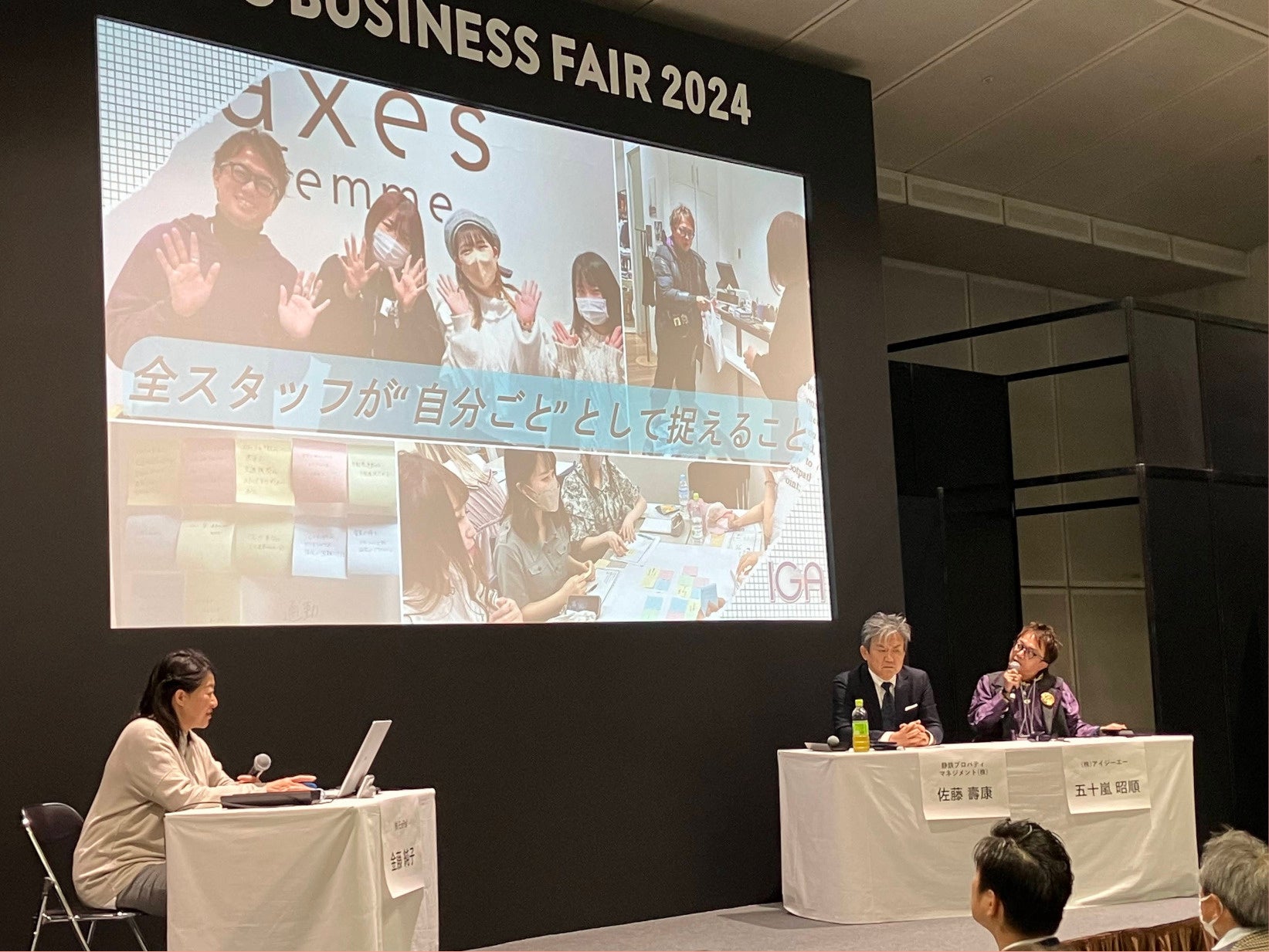 SCデベロッパーやテナント企業が集う「SCビジネスフェア」では「ESぼうさい 『もしも』のとき、守れますか?」というテーマのもと、(株)EnPalの金藤様、静岡プロパティマネジメント(株)セノバ事業部常務取締役の佐藤様、そして(株)IGA代表取締役社長の五十嵐が登壇。デベロッパーとテナントそれぞれの視点や意見を出し合ったプレゼンテーションは来場者の注目を集め、100名を超える聴講者が熱心に耳を傾けていました。