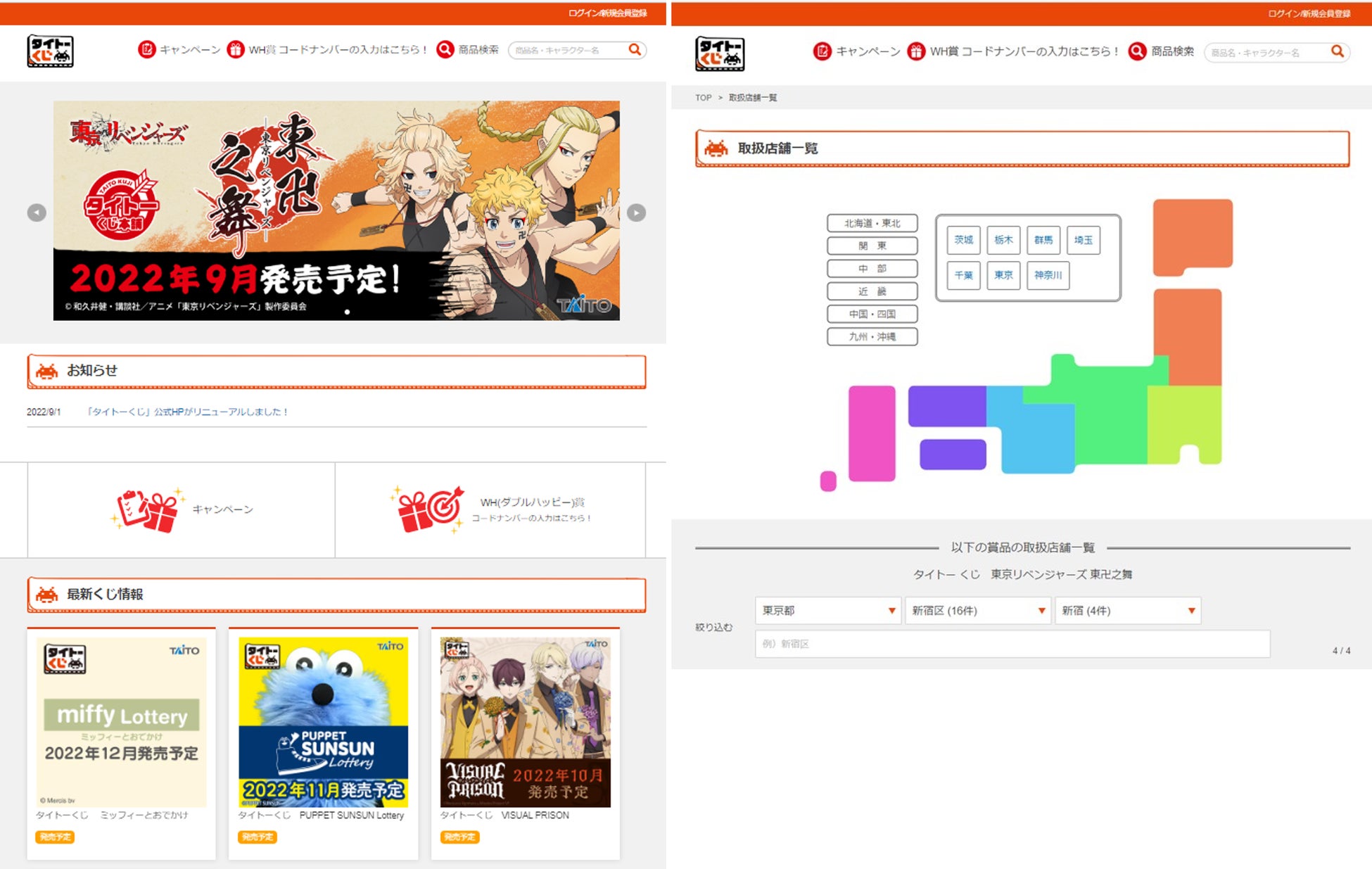 「タイトーくじ本舗」がリニューアル。ロゴの一新と、公式サイトのデザインをより使いやすく改良。