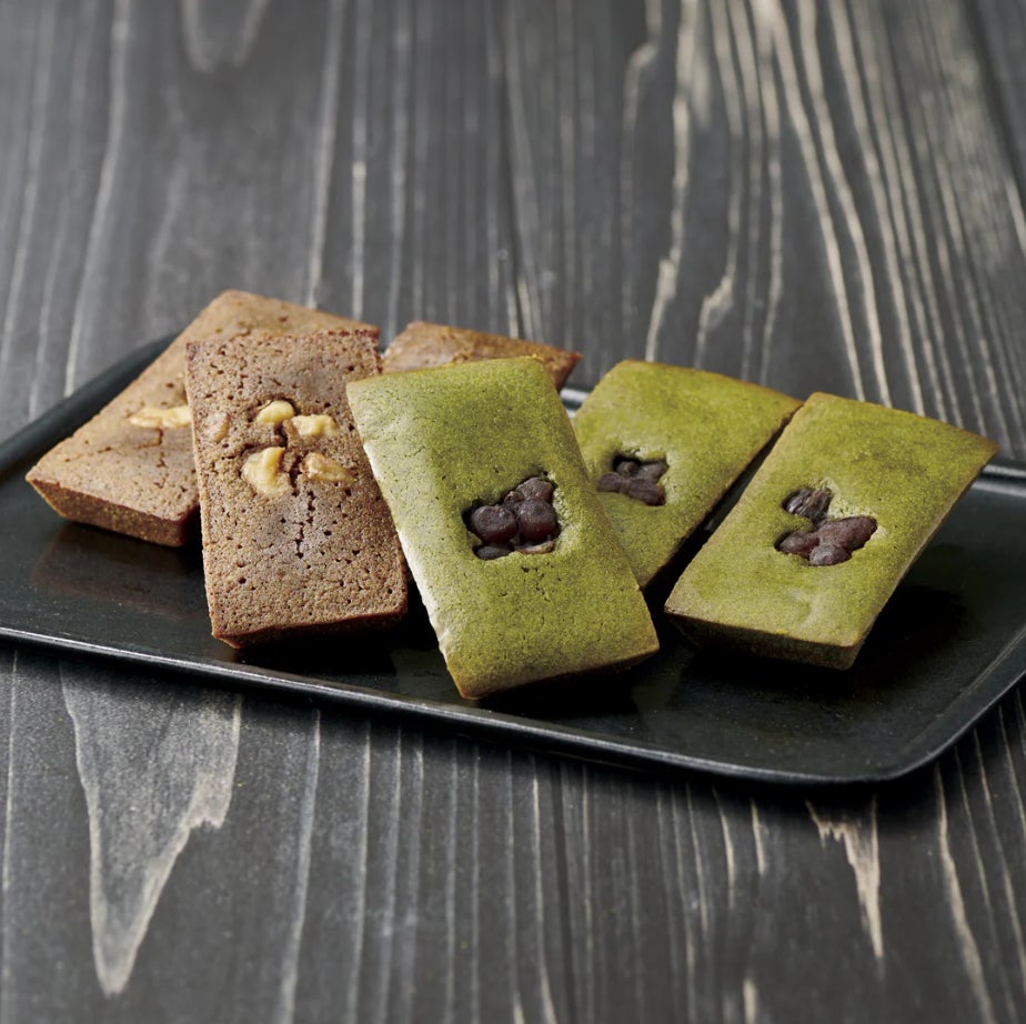 「抹茶」と「ほうじ茶」の2種をご用意。それぞれ焼き菓子用にブレンドした抹茶・ほうじ茶と発酵バターを使用し、大納言小豆とくるみを添えてしっとり焼き上げました。
