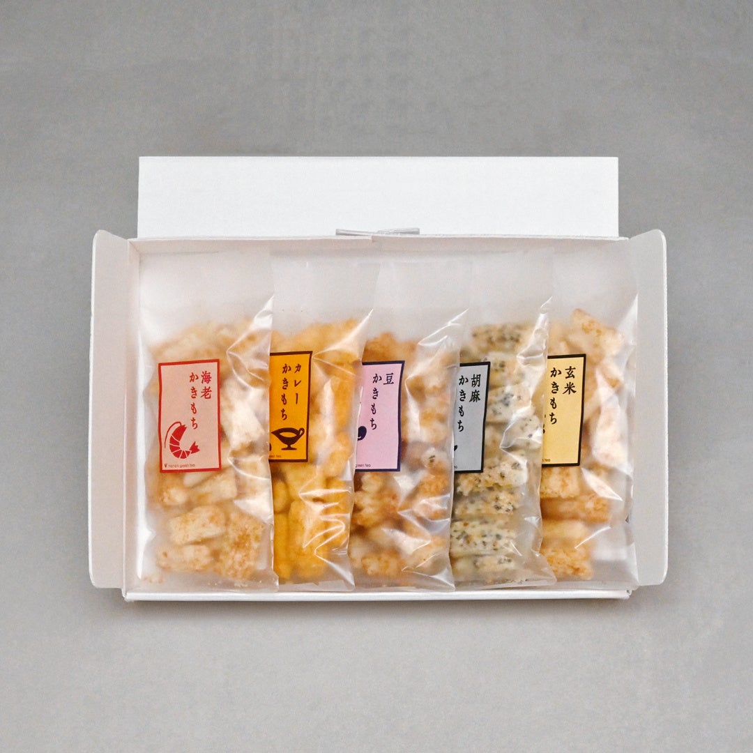 ●かき餅5個入り(海老、カレー、玄米、豆、胡麻):¥2,100(税込)