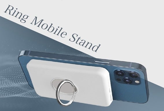 本体付属のリングに指を通して使用すれば、スマホとバッテリーをマグネットで固定※して重ね持つことができます。また、本体付属リングはスマホスタンドとしても使用でき、充電しながら動画視聴が可能です。