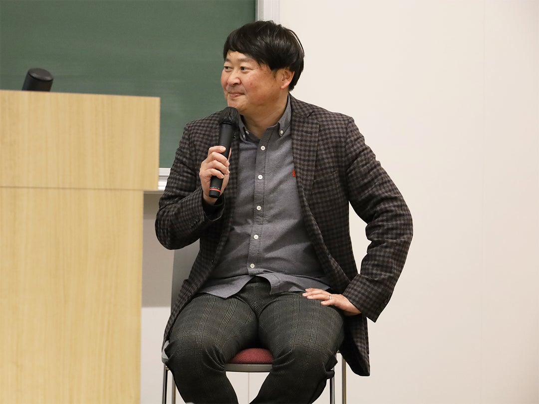 本講義は人間科学部人間科学科の特別講義として実施され、コーディネーターの二宮雅也教授とのディスカッション形式で進行しました。車いすラグビーと出会ったきっかけやその魅力、代表チームの様子、社会人とスポーツ選手との両立等、貴重なお話をしていただきました。どんな困難も前向き捉え、笑顔で語る倉橋選手の様子が印象的でした。