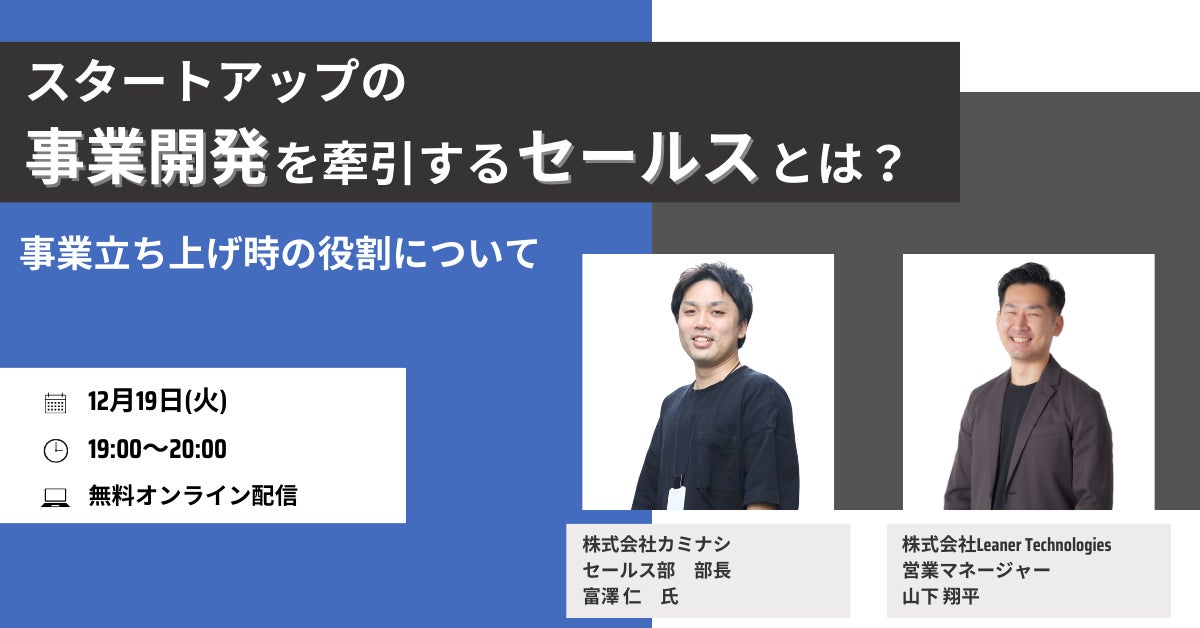 カミナシ×Leanerが、営業職に向けた2社合同採用イベントを12月19日(火)に開催~スタートアップの事業開発を牽引するセールスとは?事業立ち上げ時の役割について~