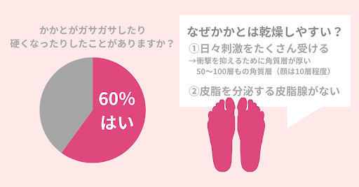60%の女性が「かかとがガサガサしたり、硬くなったりした」ことがある