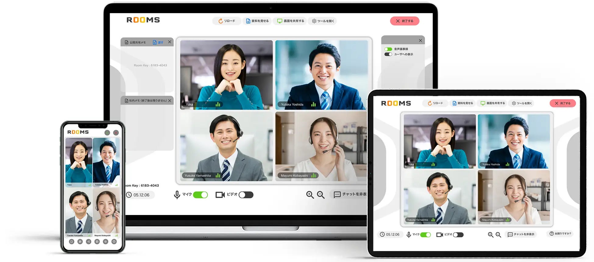Zoom・Teams・Webexといった、海外製Web会議システムがビジネスシーンでメジャーに使われるようになった中、ROOMSが選ばれている理由は下記の通りです。