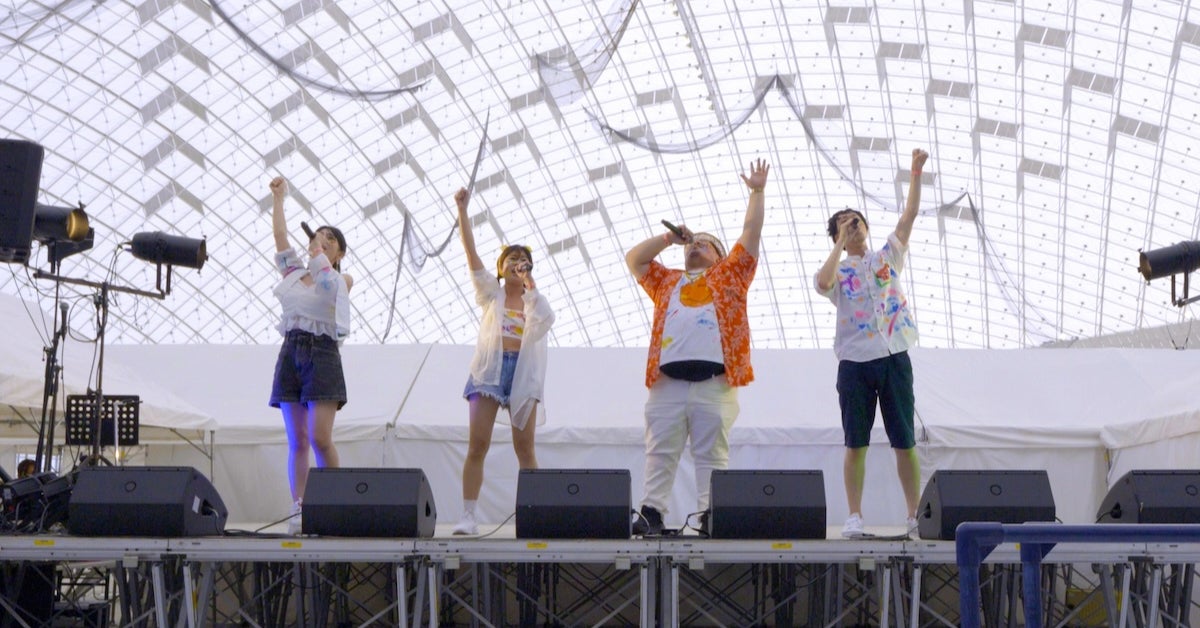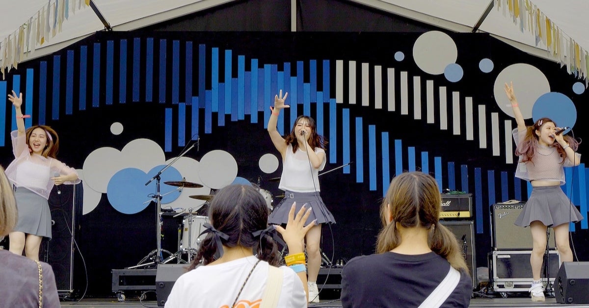 2019年以来に復活したDolphin Thruステージ。過去には羊文学やLucky Kilimanjaroなどの人気アーティストが出演してきました。そんな期待の若手アーティストが登場するステージで、ミュージックプラネット参加アーティストがオープニングアクトを務めました。1曲目は女性グループが歌う「1Q96」。20代女性をイメージして作られ、「私は私あなたにならない」という歌詞が印象的な楽曲です。まっすぐな澄んだ歌声で歌い上げ、観客も音楽に乗りながら一緒になって会場を盛り上げました。2曲目は「Tell you something」。思わずリズムに乗るような軽やかなメロディが特徴的な楽曲を男女グループが歌いました。「盛り上がってくれますか?」と客席に投げかけ、観客もタオルを振り回すなど、会場に一体感が生まれました。