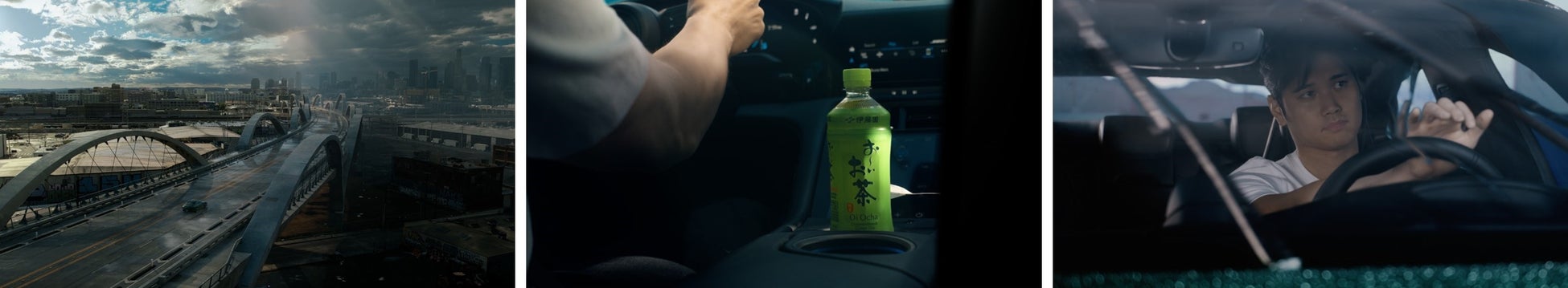 本TV-CMは、大谷選手の個人の時間や試合前など、「お〜いお茶」と一緒に過ごしてきた大谷選手のエピソードを元にしています。世界的なスターである大谷選手の人生にも、当然“晴れの日”や“雨の日”のような変化があります。しかし、どんな日だったとしても「お〜いお茶」を飲むことだけは変えず、気持ちを切り変えていく大谷選手の日常を描いた、メッセージ性のある物語です。映像は、大谷選手が曇天のロサンゼルスで車を運転するシーンから始まります。ドリンクホルダーには「お〜いお茶」。車を降りて「お〜いお茶」を飲もうとすると次第にLAの空に晴れ間がさし、心が晴れやかになっていく大谷選手の心と天気がシンクロする演出です。スタジアムに到着したあとも雨がまだ残っていますが、大谷選手が「お〜いお茶」へ手を伸ばすと、再び晴れ間が差し込みます。そして大谷選手が「お〜いお茶」を一口飲んで、バッターボックスへ向かうと完全な晴天となり、ドジャースタジアムが青空に照らされ、大きな歓声が響き渡るエモーショナルな演出で映像が終わります。