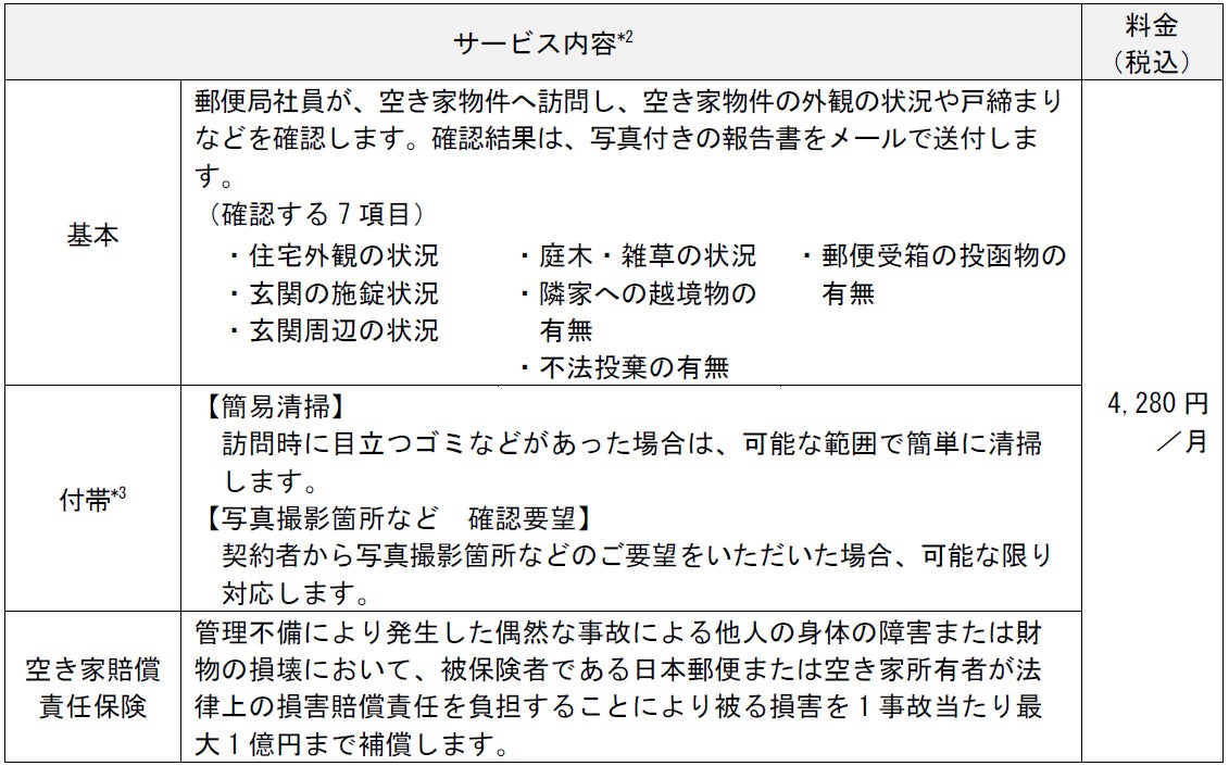 今回、利用者様により安心してサービスをご利用いただけるよう、三井住友海上と「日本郵便専用の空き家賠償責任保険」を締結し、サービス提供を開始したことをお知らせするものです。