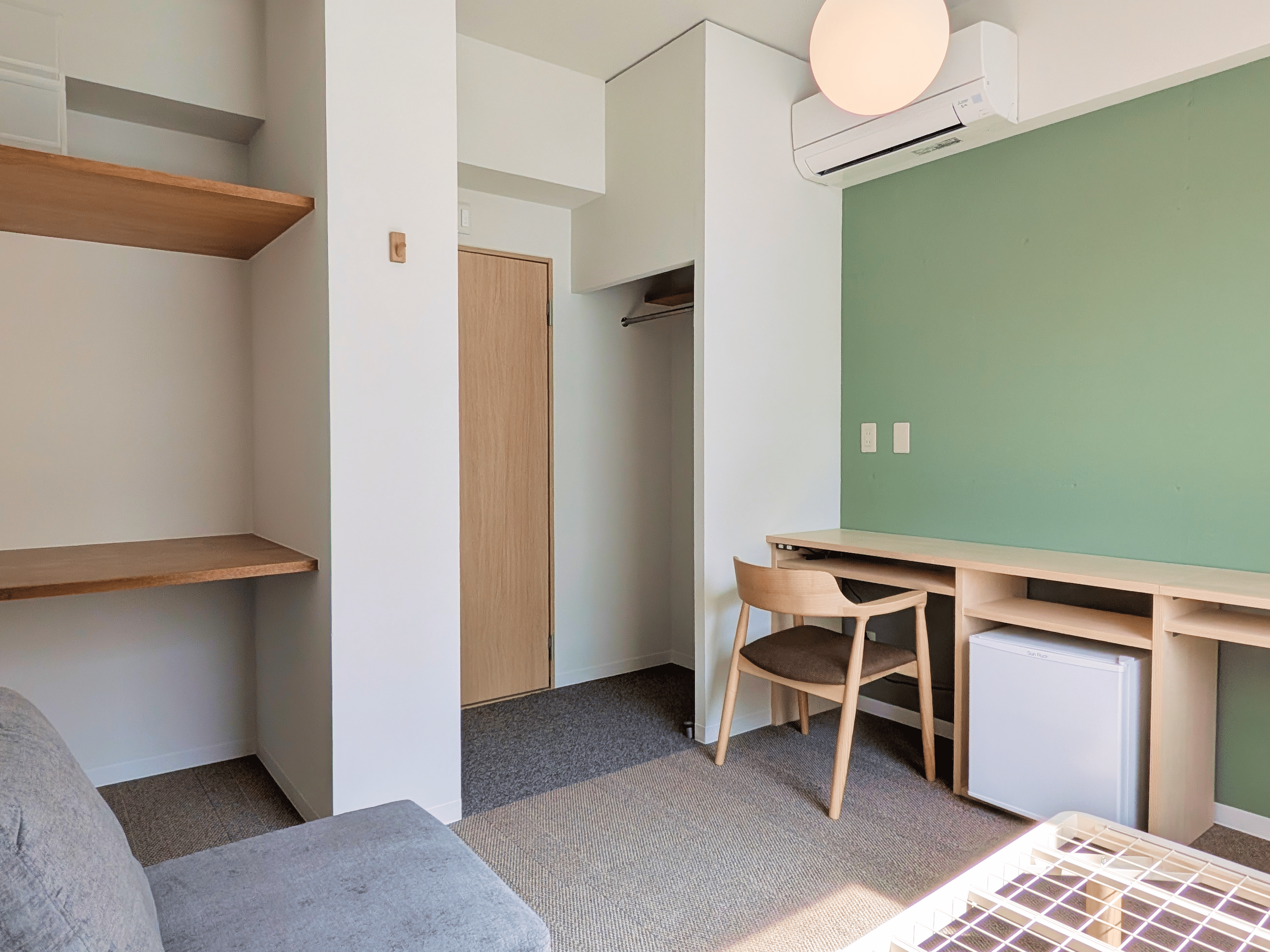 ベッドやデスク、ソファをはじめ、生活に最低限必要な家具が備わっているため事前準備の必要なく手ぶらでご利用いただけます。自社施工によるプレーンな色味で統一された内装は男女問わずご好評をいただいております。一部拠点では台湾発の大人気マットレス「Sleepy Tofu」や、無印良品の備品など、暮らしの質を向上させるこだわりの備品を使用することで、心身ともに満たされる暮らしを提案しております。