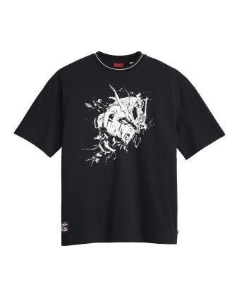 リーバイス® X ガンダムシード コレクションには、大胆なトップスも揃います。スターブライトホワイトとデストラクションブラックの 2 色展開のボクシーT シャツは、ストライクガンダムのグラフィックジャカード織りのコラボレーションパッチが特徴。ライトグレーのラグビーシャツは、コットンツイルのブラックの襟、インパクト大のストライクガンダムプリント、ジャカードのジョックタグ付き。ダークブルーのロングスリーブ T シャツは、背中のフリーダムガンダムのプリントと、左胸と右袖の反射プリントと非反射プリントのミックスが目を引きます。そして、赤いリーバイス® X ガンダムシード フーディーは、フロントの胸に光沢のあるイージスガンダムのプリント、左袖にジャガードパッチが施されています。