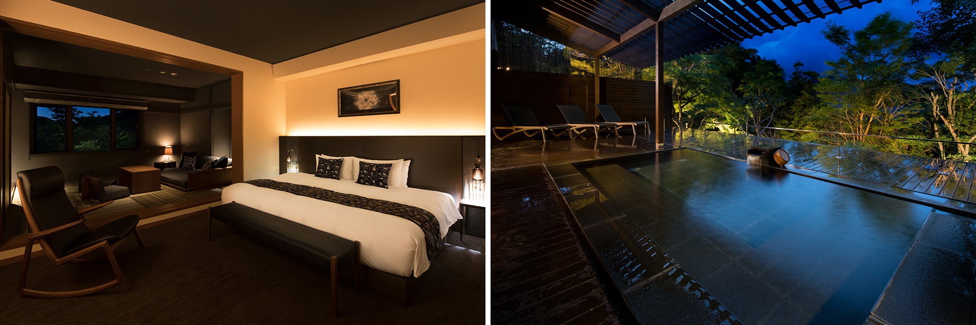 付 帯 施 設 : the bar、spa kazan/hinoki、private spa & bar、smoking bar、lounge、presidential suite room(132m2)