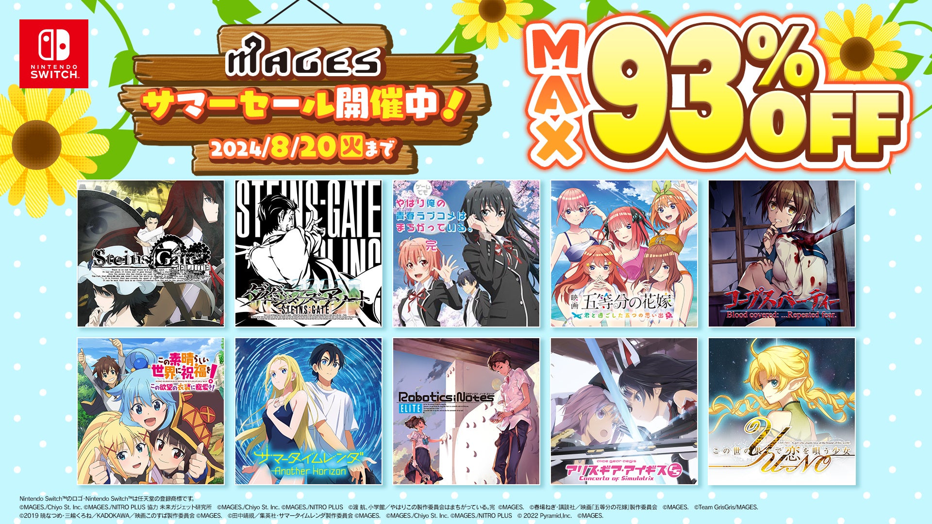 シュタゲ、五等分の花嫁など人気作がお得!Nintendo Switch™用のダウンロード版 26タイトルが最大93%OFFの『MAGES.サマーセール2024』7月25日(木)より開催のお知らせ