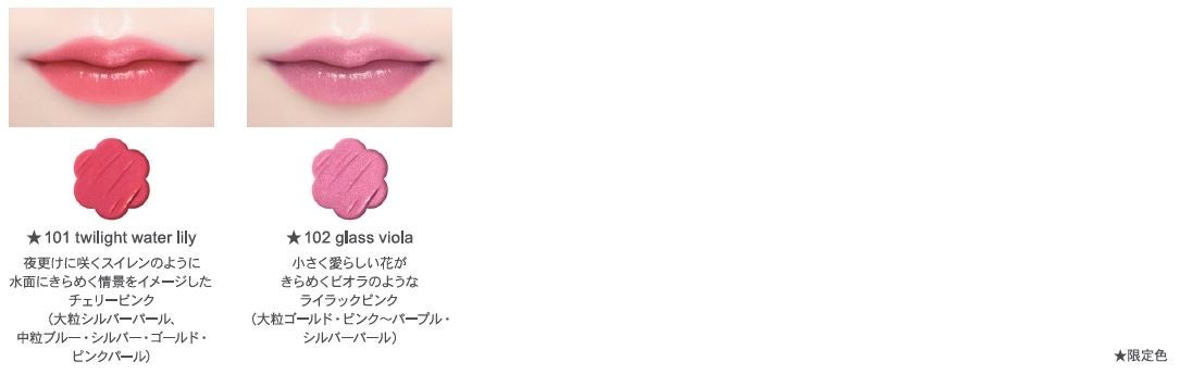 しっかり発色するブライトカラー、肌になじませるニュアンスカラー、光をあたえるハイライトカラーが1つになった5色パレットのチークカラー。可憐な花々をイメージした落ち着いた彩りの新色2種が仲間入りです。