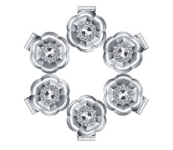 一輪の花をモチーフにしたキャップには、ふっくらとした花のレリーフをトップに施し、たくさん集めて円形に並べると花冠になる仕掛けも。自分だけの花冠をつくるように、お好きなカラーをコレクションしてお楽しみください。