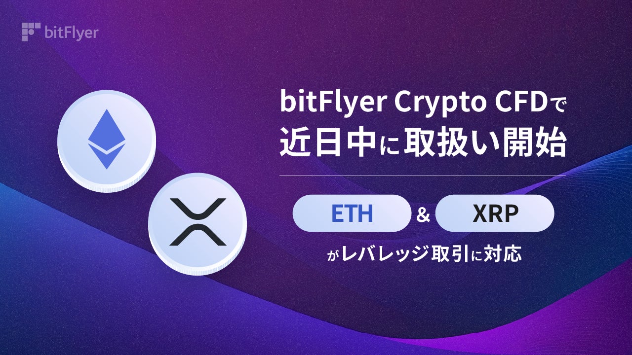株式会社 bitFlyer(本社:東京都港区、代表取締役:加納 裕三、以下「当社」)は、暗号資産のレバレッジ取引のプロダクトである bitFlyer Crypto CFD において、イーサリアム(以下「 ETH 」)と XRP *¹ の取扱いを近日中に開始することをお知らせいたします。