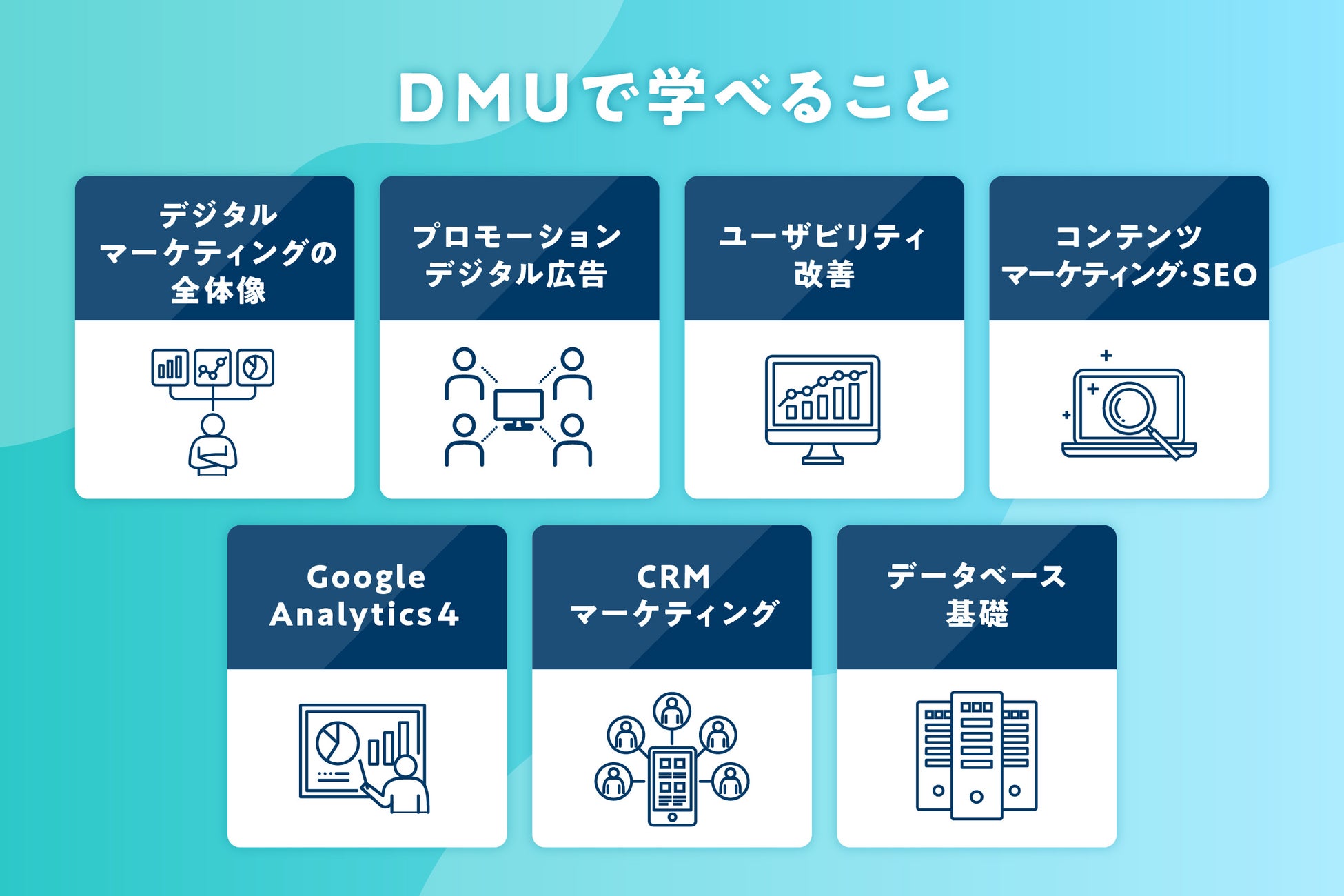 DMU(Digital Marketing Unit)は、オンライン完結型の「デジタルマーケティング人材育成スクール」です。